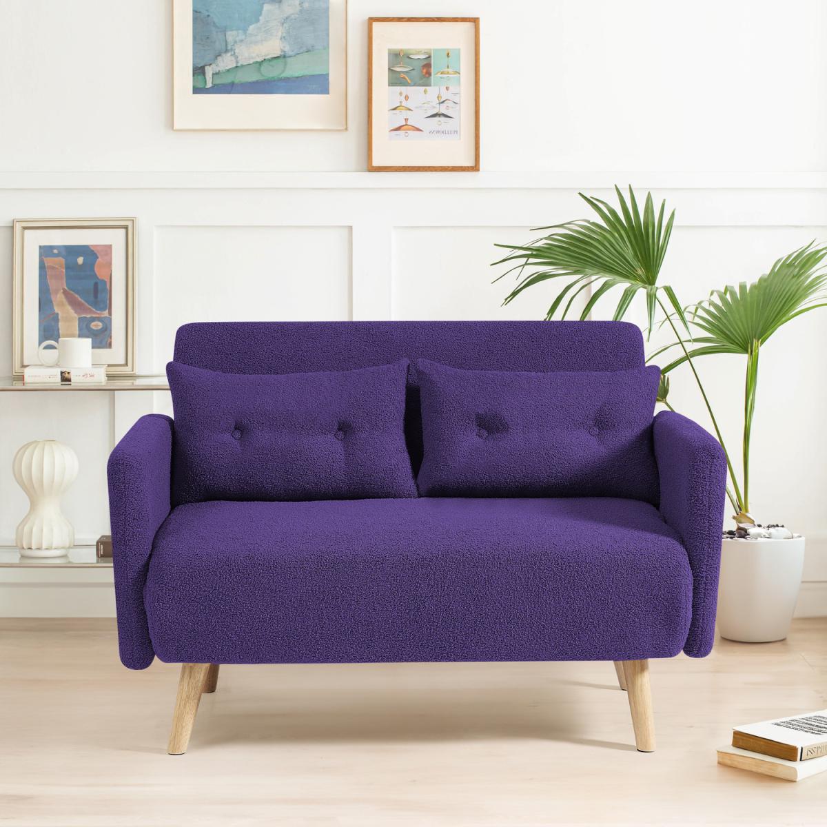 Elevate your living space with the Roxy 2-seater sofa bed, a versatile and space-saving solution. Crafted with a plush borg fabric, this sofa offers unparalleled comfort whether you're lounging, entertaining guests, or accommodating overnight visitors. With its sleek design and natural wooden legs, it seamlessly blends style and functionality. Easily transform it from a cosy sofa to a convenient bed, making it an ideal choice for compact homes or multi-purpose rooms. Dimensions:For Sofa, Seat Height 46cm, Width 127cm, Armrest height 65cm From Floor, Total height 85cm From Floor. For Bed:Lenght 197cm