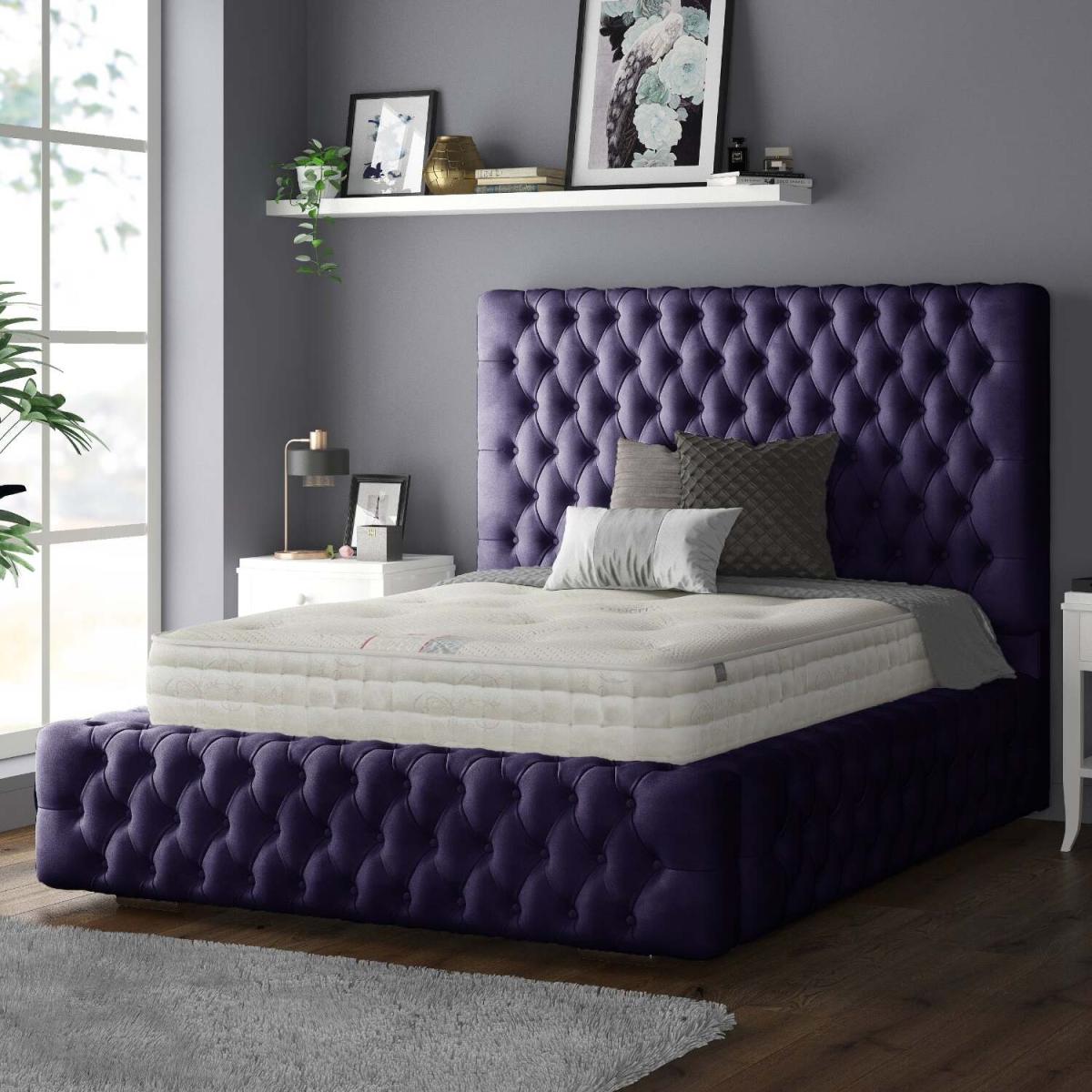 Royal Cushioned Chesterfield Plush Velvet Bed Frame 10 Inch Border - Plum / Double