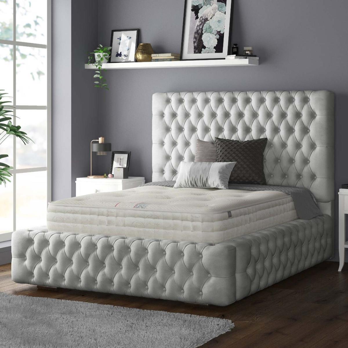 Royal Cushioned Chesterfield Plush Velvet Bed Frame 10 Inch Border - Silver / Superking