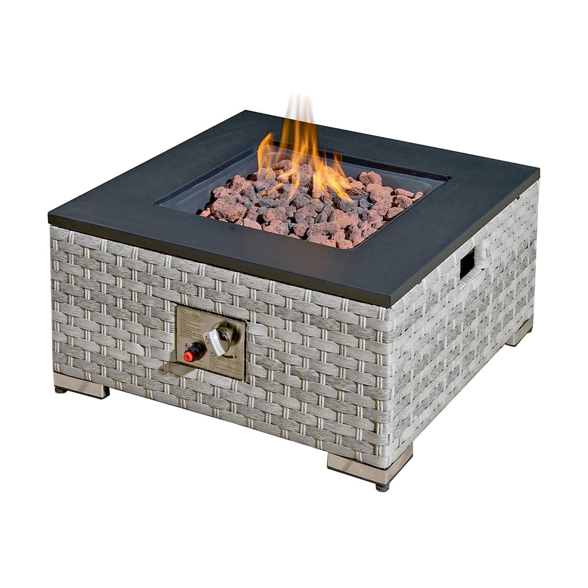 Make a bold statement with the Icarus Rattan Firepit Coffee Table, the perfect addition to your outdoor living space for creating a warm, inviting atmosphere during summer evenings and entertaining guests. This stylish firepit includes fire glass pebbles and a flat iron cover to protect it when not in use. Unlike traditional glass and rattan tabletops, the iron plate tabletop offers unmatched strength, durability, and resistance to high temperatures, heavy weights, and general wear and tear. Powered by LPG with a BTU of 50,000, the Icarus Firepit provides a powerful and efficient heat source for your gatherings. Please note Gas bottles cannot be stored inside or underneath this unit for safety.