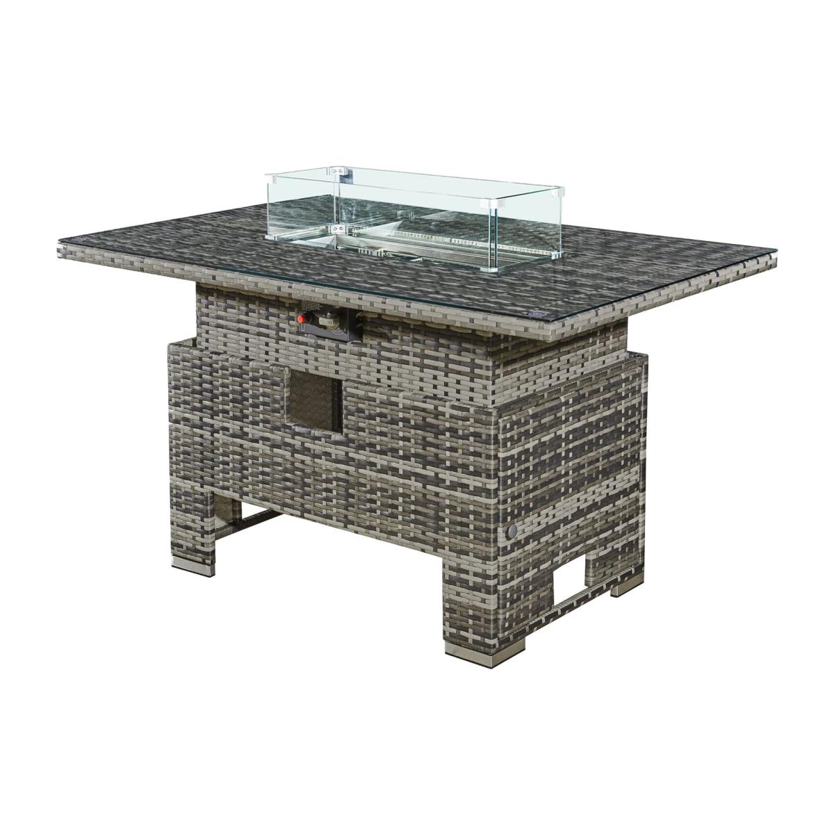 Transform your outdoor living space with the Icarus Rattan Rising Firepit Table, a perfect blend of functionality and style. Ideal for summer evenings with family and friends, this versatile table allows you to seamlessly transition from dining to casual lounging, thanks to its rising table design. The firepit feature elevates your garden with mesmerizing flames and comforting warmth, setting the stage for unforgettable gatherings. Equipped with an electronic ignitor button for easy lighting and a dial to control the flames intensity, the table also includes a glass wind guard, PVC cover, stainless steel lid for protection when not in use, and FREE fire glass pebbles. Powered by LPG with a BTU rating of 60,000, this firepit offers efficient warmth, and the gas tank conveniently fits inside the table. Be sure to measure the internal space before purchasing your propane tank to ensure a perfect fit.