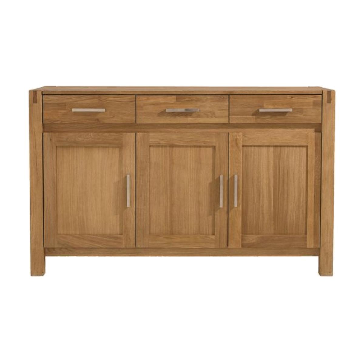 The Royal Oak 3 Door Sideboard combines ever popular Oak with a stylish and fresh look to bring a truly versatile Sideboard. Carefully selecting their oak for colour an grain Royal Oak pieces are then enhanced using natural oils to bring a simply timeless collection. Oak Natural oiled finish Dimensions: 140cm x 45cm x 86cm Assembly required