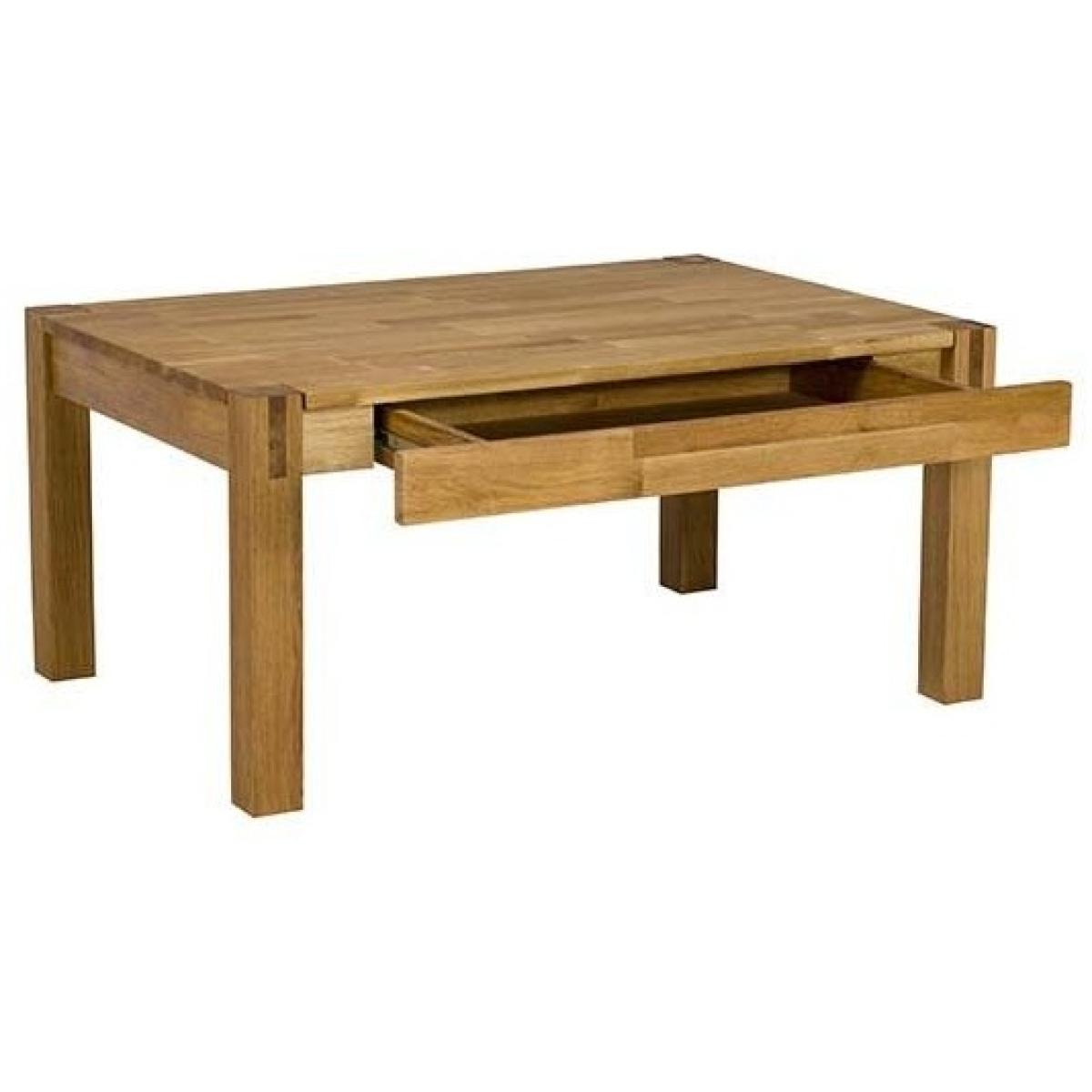 Bringing a fresh and stylish take on traditional oak furniture the Royal Oak Coffee Table has been made from carefully selected oak for its colour and grain and is then enhanced by a natural oiled finish. Oak Natural oiled finish Dimensions: 95cm W x 65cm D x 45cm H Assembly may be required Complete with handy concealed drawer beneath the tabletop - great for storing magazines, books, remote controls and a host of other items