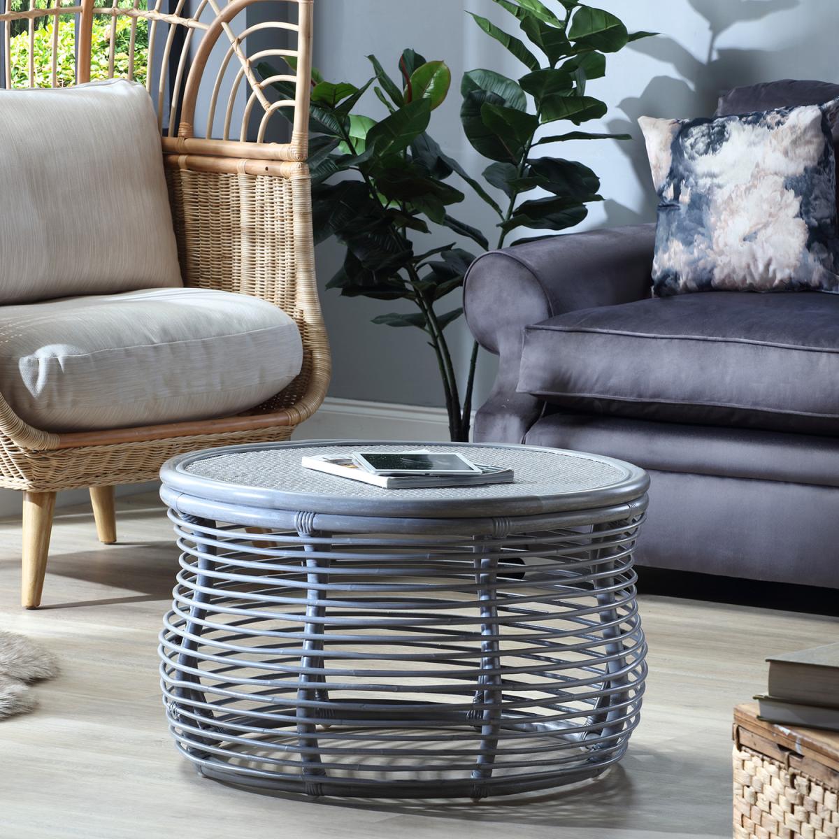 I love this round coffee table for its contemporary yet versatile look, making it a great addition to both modern and coastal-inspired interiors. Its grey colour and rattan-style design give it a relaxed, understated charm that works well in living rooms aiming for a laid-back feel. Practical styling tips include layering with textured soft furnishings or placing a layered tray on top to organise accessories and add visual interest. It’s also well-suited to casual schemes, pairing nicely with natural fibres, linen cushions, and other grey tones to create a cohesive, inviting space. This piece is perfect for adding a touch of texture without overwhelming the room's aesthetic.