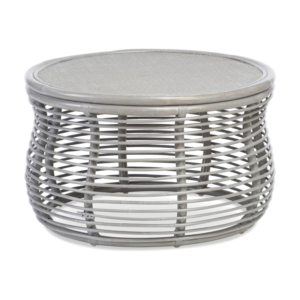 A sustainable natural rattan coffee table with levels of circular cane and intricate rattan detailing
