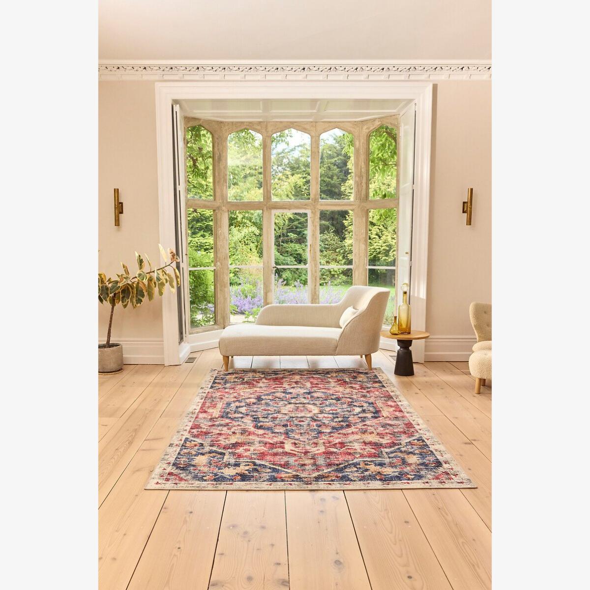 Introducing Hug Rug Eco-Washable Rugs. Made here in the UK, using recycled materials, they’re a rug you can feel good about. Much like the rest of our Hug Rug range, our new rugs are stain resistant, washable and have a non-slip backing, making them the ideal rug for busy homes. Launching in a range of designs, and colours, there’s a design for every interior! The Royal Traditional design features a vintage symmetrical pattern in shades of cream and yellow, on a background of dark red and dark blue, for a bold design to create interest in any home. Sizes Available: 1. 120x185cm2. 160x230cm3. 185x275cm. Composition: Face: 100% Recycled Teflon Eco Lite Nylon made from plastic bottles:Backing contains natural rubber. This product will be dispatched by one of our trusted suppliers. You’ll be contacted by their selected courier about your delivery.
