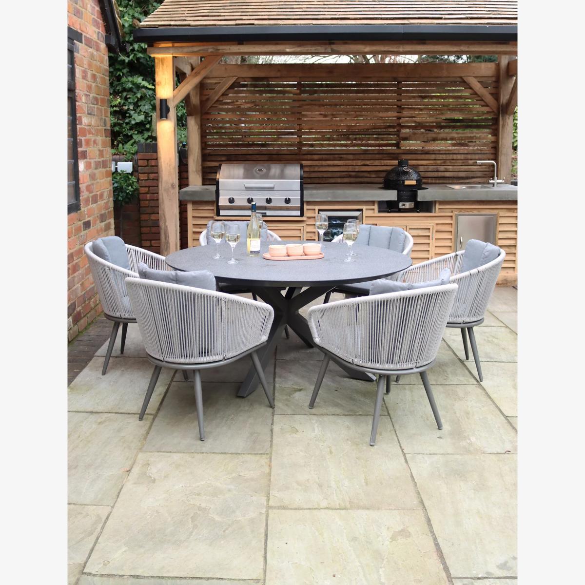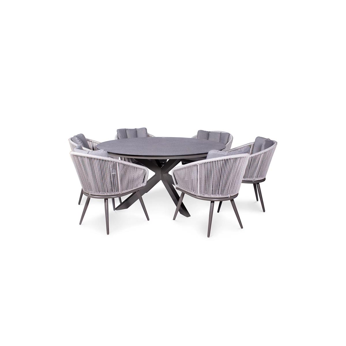 Royalcraft Aspen 6 Seater Round Garden Table & Chairs - Grey, Grey