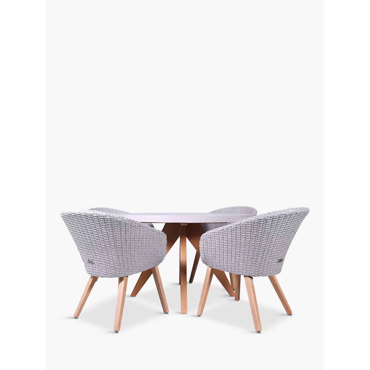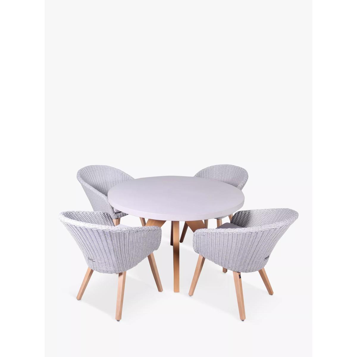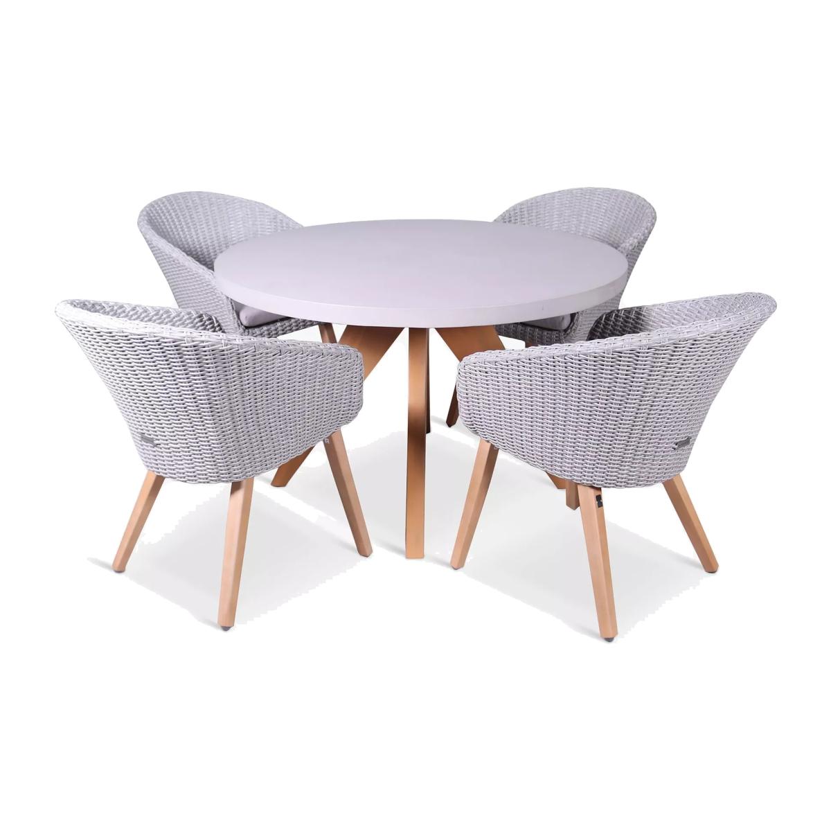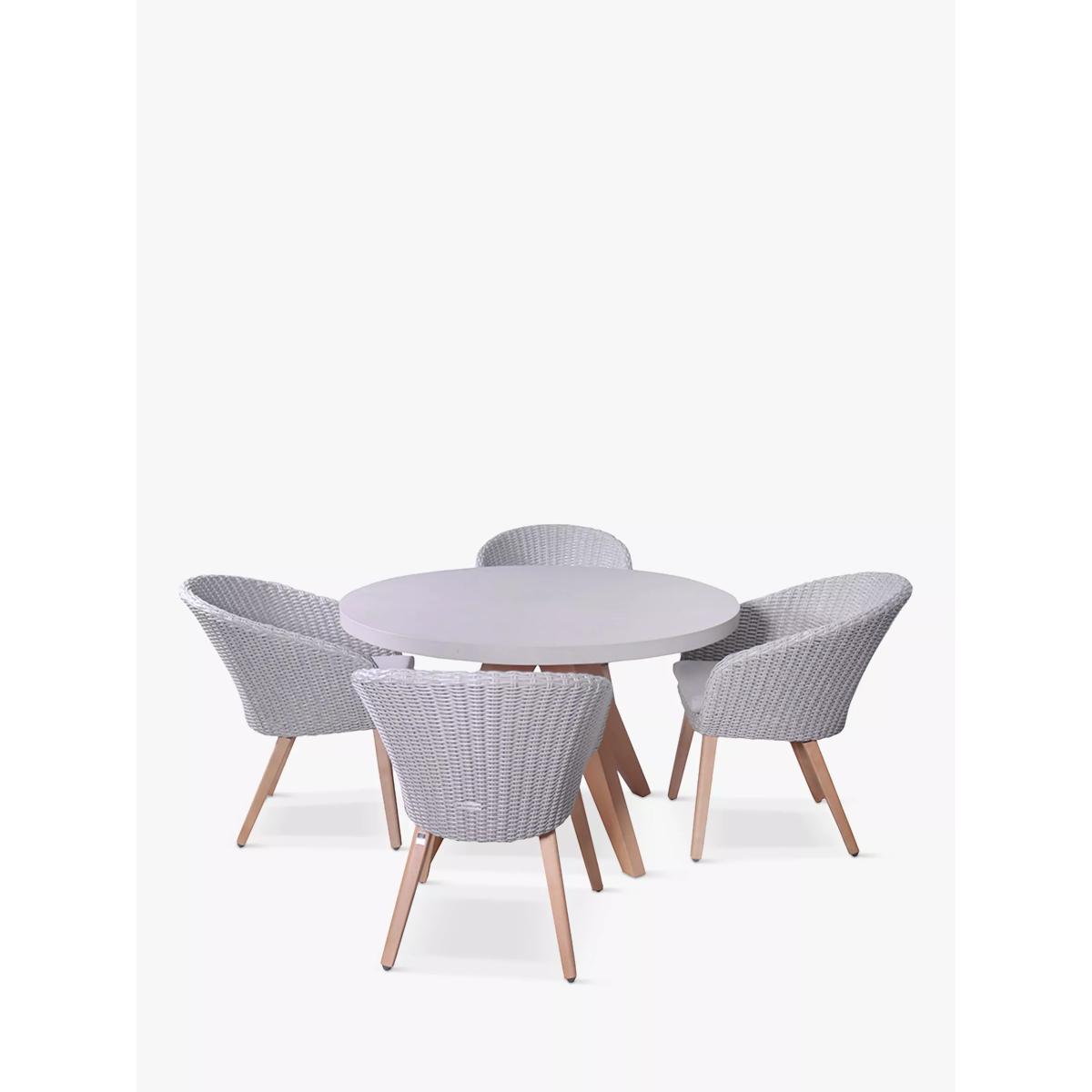 Royalcraft Luna 4-Seater Round Concrete Garden Dining Table & Rattan Chairs Set, Warm Grey