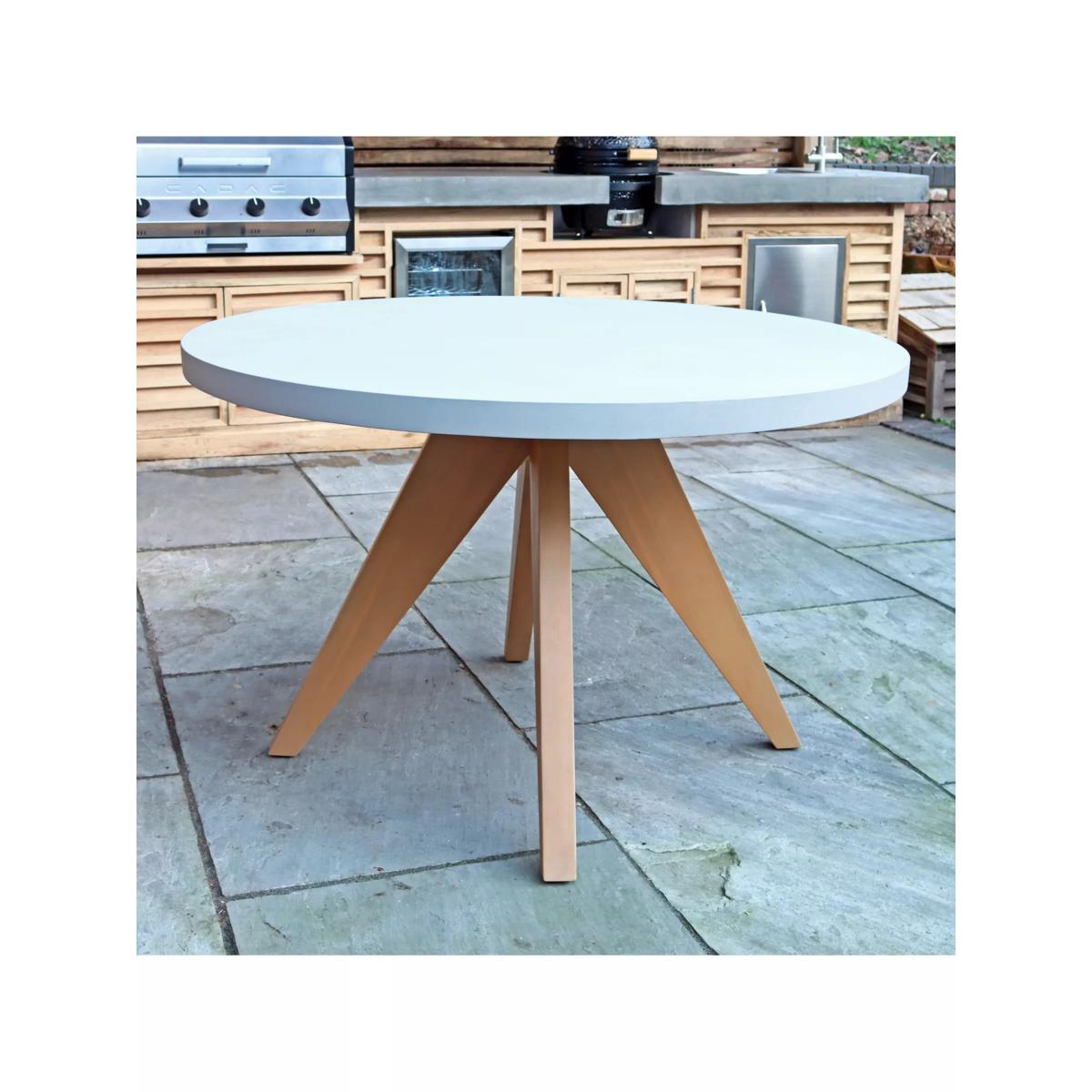Round Luna garden table with a concrete top, from Royalcraft. The use of lighter concrete makes the table more practical for outdoor use and easier to move. Key features: Round Luna garden dining table with a concrete top Room around the table for up to four people Naturally weather-resistant FSC-certified acacia wood frame Protective polyurethane coating on the wood Easy to maintain By choosing this product you are supporting responsible management of the world's forests. The Forest Stewardship Council® (FSC®) is a global, not-for-profit organisation that helps take care of forests and the people and wildlife that call them home. To learn more, visit fsc.org. Choose the perfect outdoor furniture We have a selection of wooden furniture for you to choose from which will suit the home or garden. Below are a few options to consider when choosing your perfect outdoor furniture. TeakA premium and popular wood with an attractive appearance which ages beautifully. Strong, durable and resistant to rot and decay, this furniture requires little maintenanceEucalyptusDistinctive scent and appearance which darkens as it ages. Provides similar natural benefits to teak including moisture resistance, hardness and durability. It's plentiful in supply which makes the furniture an inexpensive choice. AcaciaNaturally durable, this wood is incredibly hard and is unlikely to suffer damage during everyday use. It provides similar natural benefits to teak, yet unlike many other hardwoods, acacia is also relatively fast growing which minimises the environmental impact.