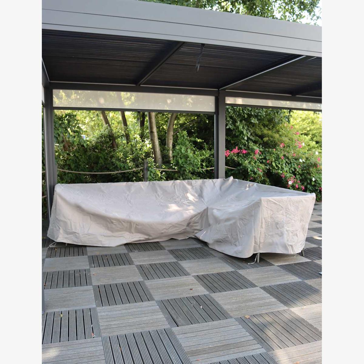 The Mayfair firepit set cover from Royalcraft helps keep your outdoor furniture protected from the elements. It's made in an L-shape and provides effective protection from leaves, tree sap, rain and snow, UV rays and bird droppings. This piece is designed for use with the Mayfair firepit set.