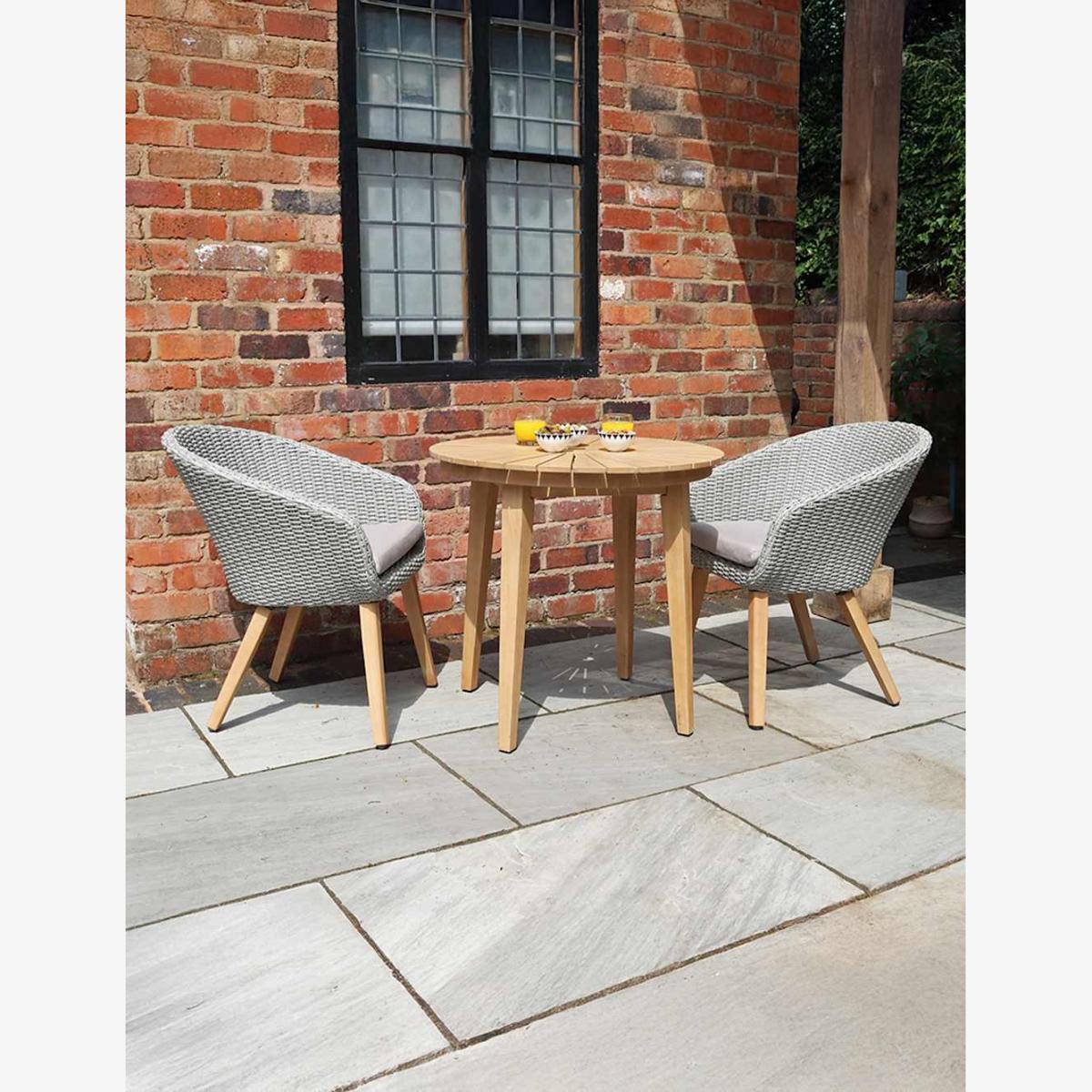 I’m a fan of this grey-mix bistro set for its clean lines and mix of woven texture with a light oak-effect top - it slots easily into Scandi-inspired, coastal or contemporary patios. Keep styling simple: add a pair of neutral linen cushions to the chairs, cluster potted herbs or succulents on the table, and ground the area with a small outdoor rug in muted stripes or a solid colour. It’s compact enough for balconies yet substantial enough for a garden corner, and layering in soft lighting - think battery-powered lanterns or festoon lights - will turn it into a go-to spot for coffee or evening drinks.