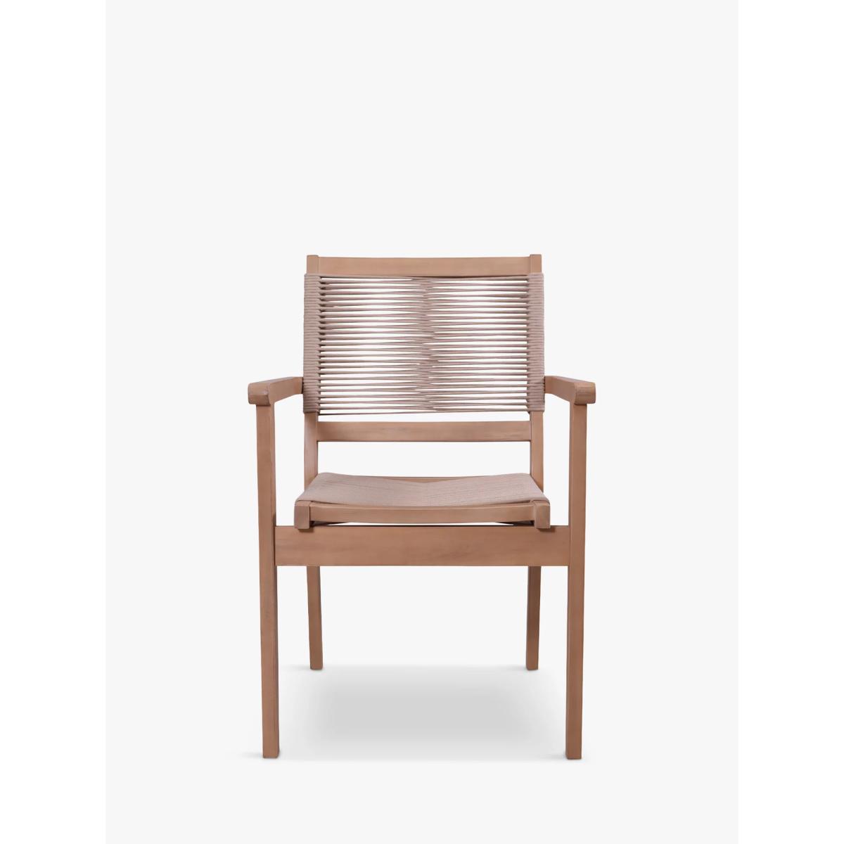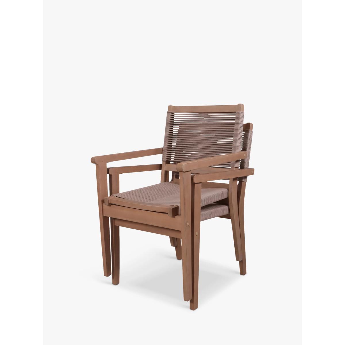 Pair of stackable Roma garden chairs from Royalcraft with a textured rope design on the seats and backrests. Sturdy, durable and comfortable. The Roma garden furniture range from Royalcraft is a stylish fusion of premium hardwood, with a protective polyurethane coating, and a textured rope weave. A sophisticated look for any outdoor space, the furniture is made from FSC-certified acacia wood and a 6mm polyester round rope weave that adds a modern aesthetic while also providing durability to withstand outdoor elements. Key features: Pair of garden dining chairs Naturally weather-resistant FSC-certified acacia wood frames Protective polyurethane coating on the wood Weather-resistant 6mm round rope weave on the seats and backrests Chairs stack for easy storage Easy to maintain By choosing this product you are supporting responsible management of the world's forests. The Forest Stewardship Council® (FSC®) is a global, not-for-profit organisation that helps take care of forests and the people and wildlife that call them home. To learn more, visit fsc.org. Choose the perfect outdoor furniture We have a selection of wooden furniture for you to choose from which will suit the home or garden. Below are a few options to consider when choosing your perfect outdoor furniture. TeakA premium and popular wood with an attractive appearance which ages beautifully. Strong, durable and resistant to rot and decay, this furniture requires little maintenanceEucalyptusDistinctive scent and appearance which darkens as it ages. Provides similar natural benefits to teak including moisture resistance, hardness and durability. It's plentiful in supply which makes the furniture an inexpensive choice. AcaciaNaturally durable, this wood is incredibly hard and is unlikely to suffer damage during everyday use. It provides similar natural benefits to teak, yet unlike many other hardwoods, acacia is also relatively fast growing which minimises the environmental impact.
