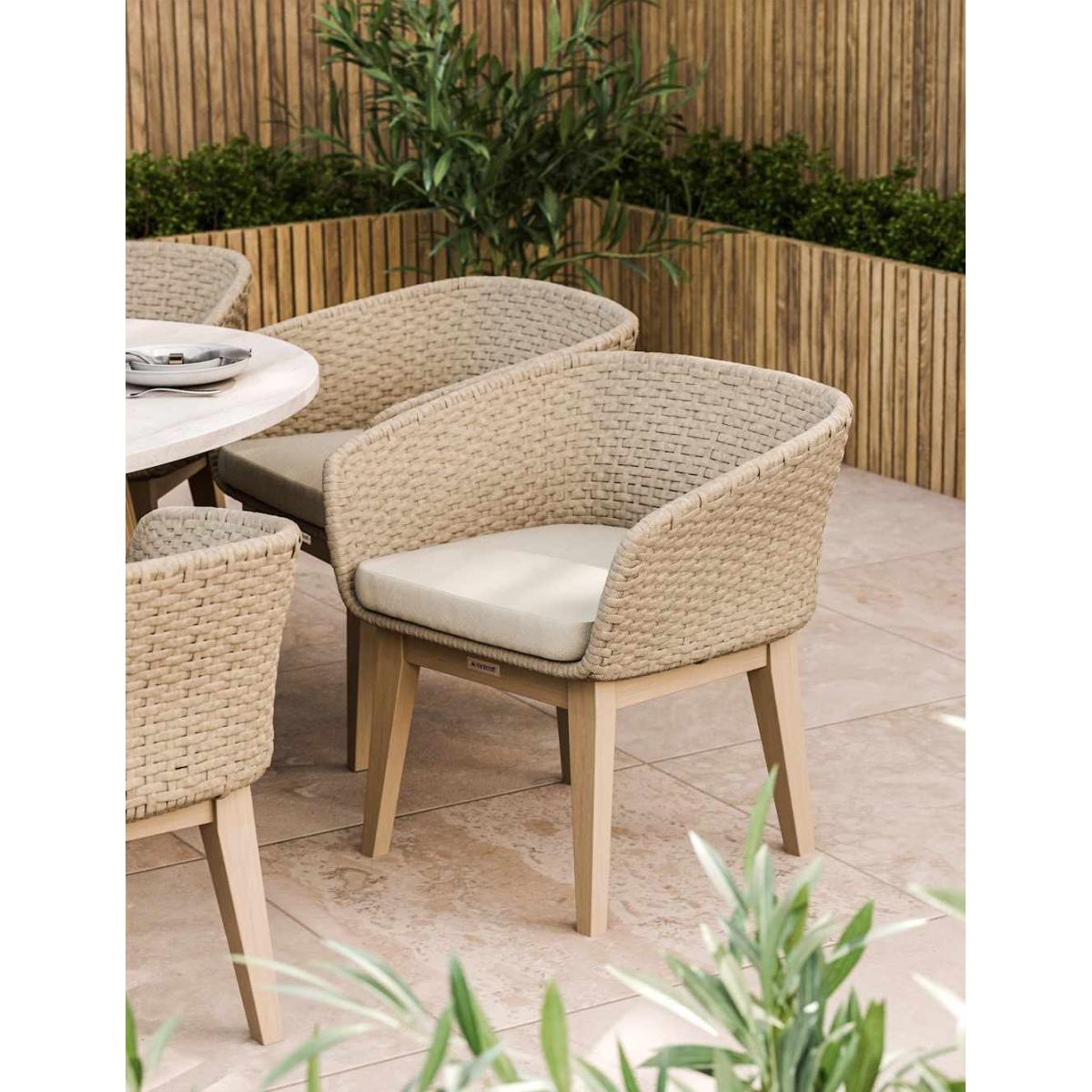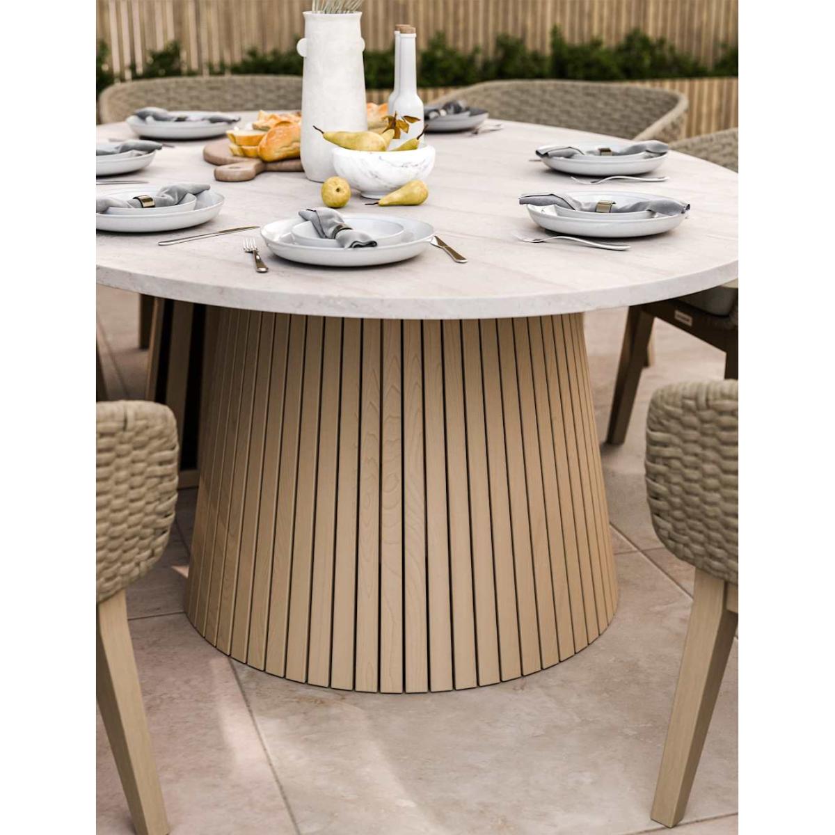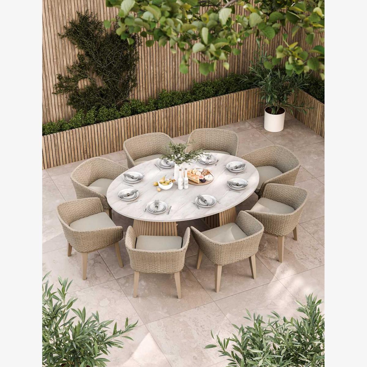 I love the Saturn 8 seater for its versatile natural tones and contemporary design, making it a great staple for outdoor dining areas. It works well in both modern and more rustic garden settings, adding warmth and texture without overpowering the space. For styling, consider pairing it with cushions in muted or earthy colours to add comfort and visual interest, or introduce vibrant tableware for a pop of colour during summer gatherings. Its neutral palette also means it can seamlessly blend into garden patios, covered terraces, or even indoor conservatories, offering flexible styling options that remain easy to update over time.