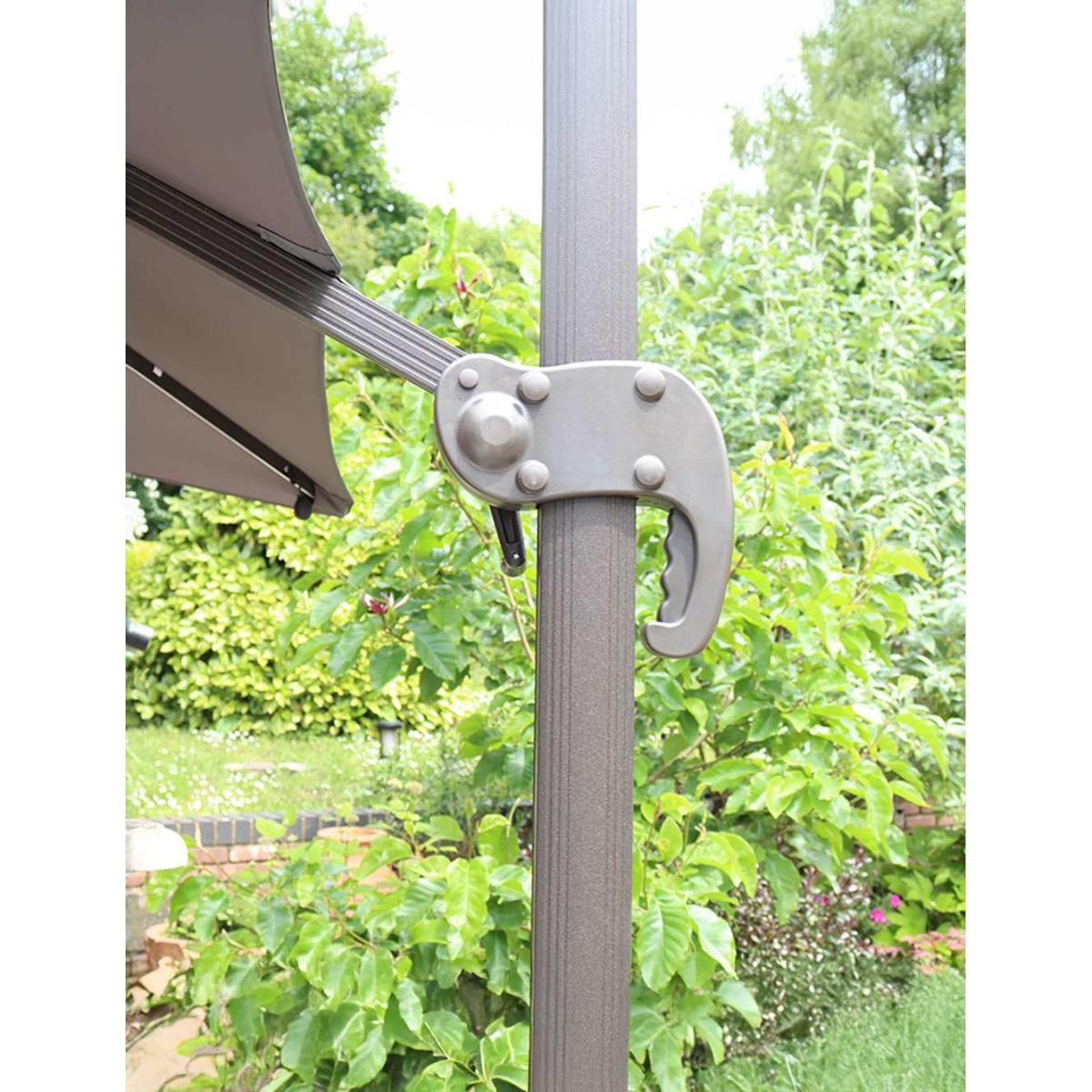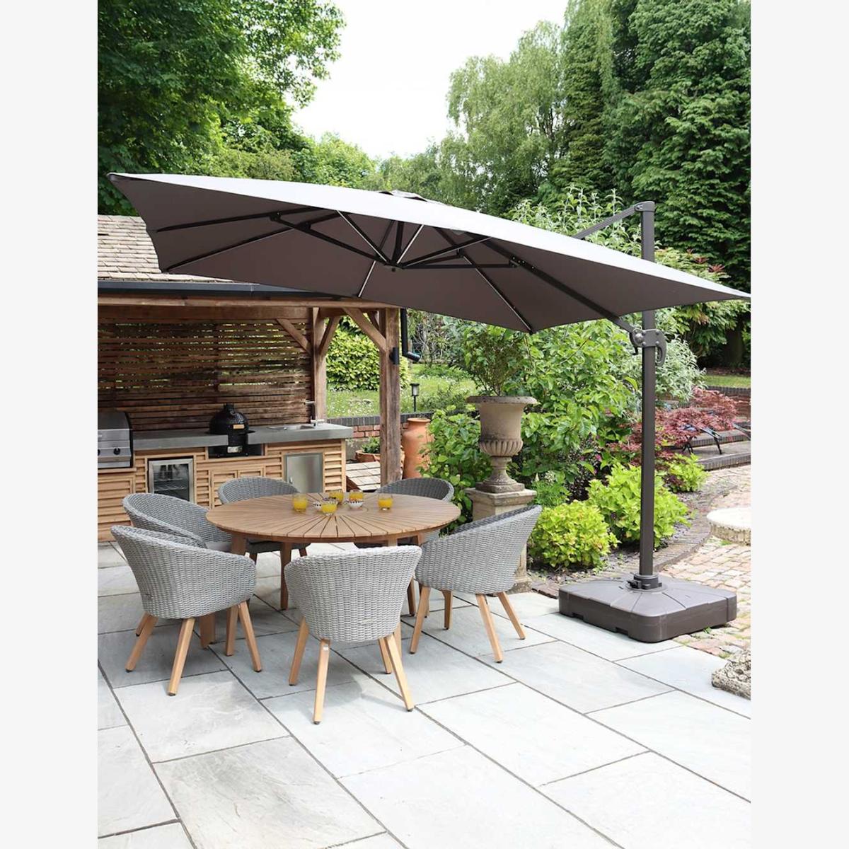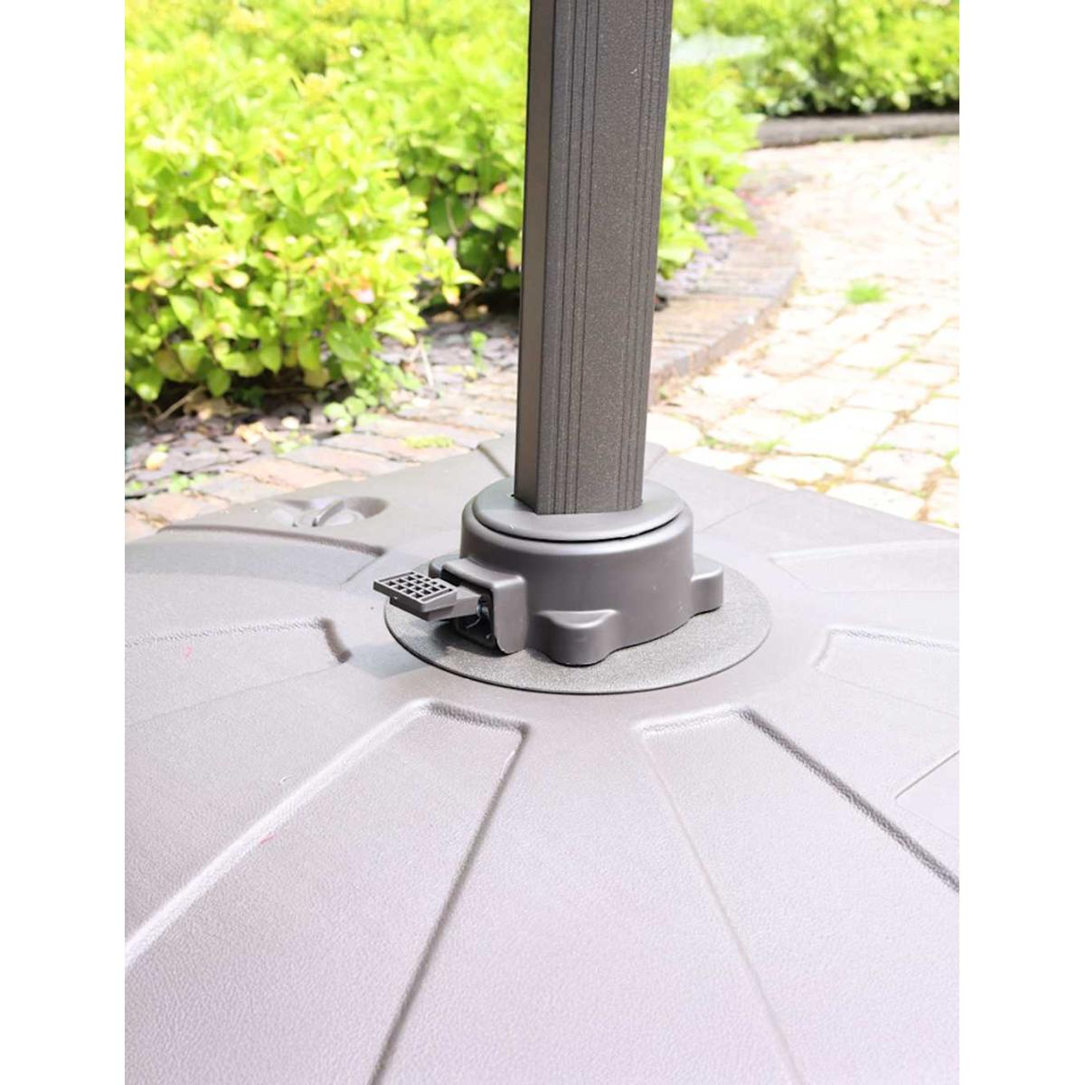With its twinkling LED lights, this Royalcraft 3-metre parasol creates a charming outdoor space from day to night. This modern, square design is made from weather-proofed fabric with a UPF finish for extra protection from UV rays. The easy handle allows you to effortlessly adjust it to six different height points for optimal shade. It's complete with a sturdy base that can be filled with sand or water.