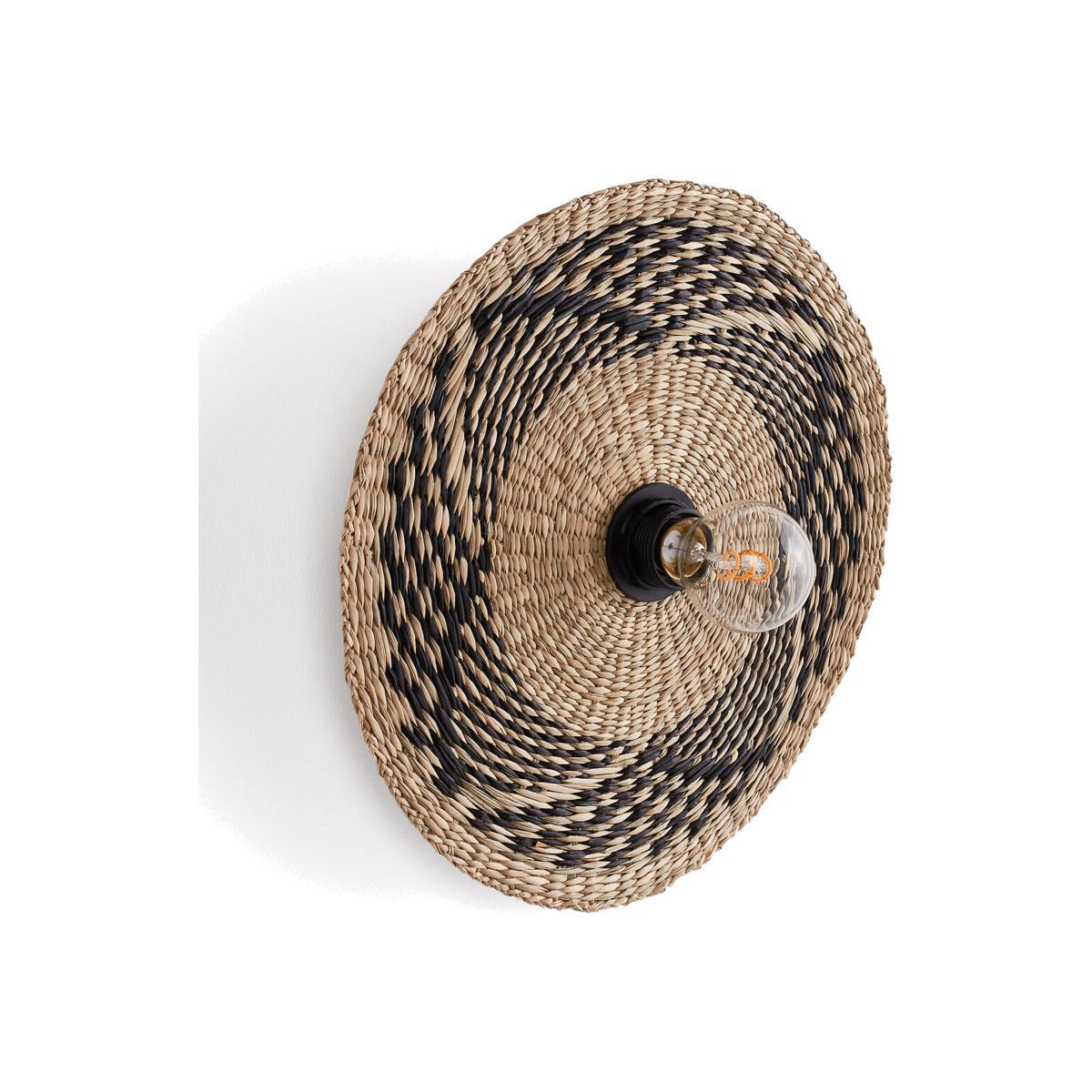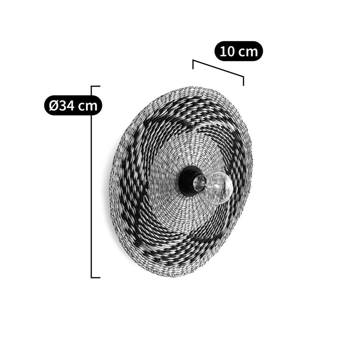 A striking woven look! This shield-shaped wall light is as much a work of art as a method of illumination. The combination of black and natural braiding gives it a graphic and modern dimension.