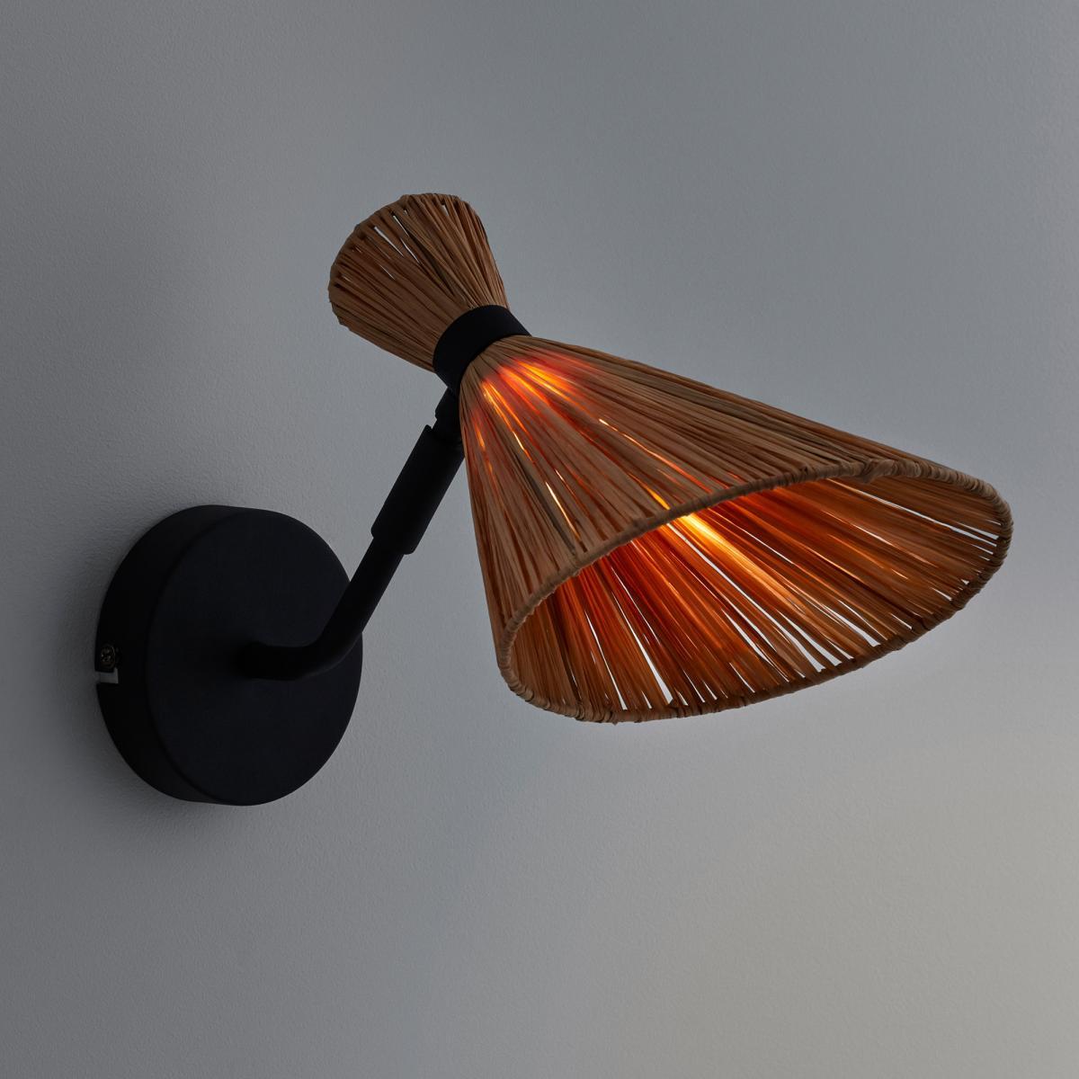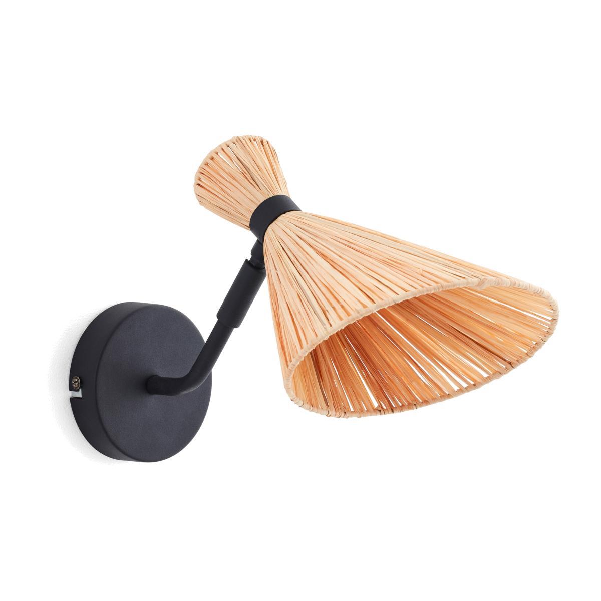 Combining sleek black metal with natural raffia, our Rozza wall lamp will quickly find its place in your home, creating a soft and modern atmosphere. Fitted with low energy LEDs for economical and optimal lighting.