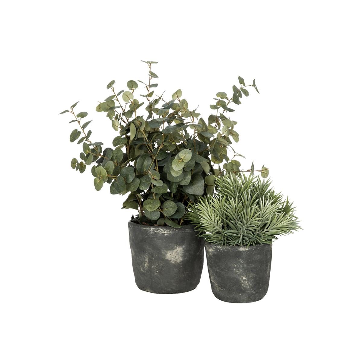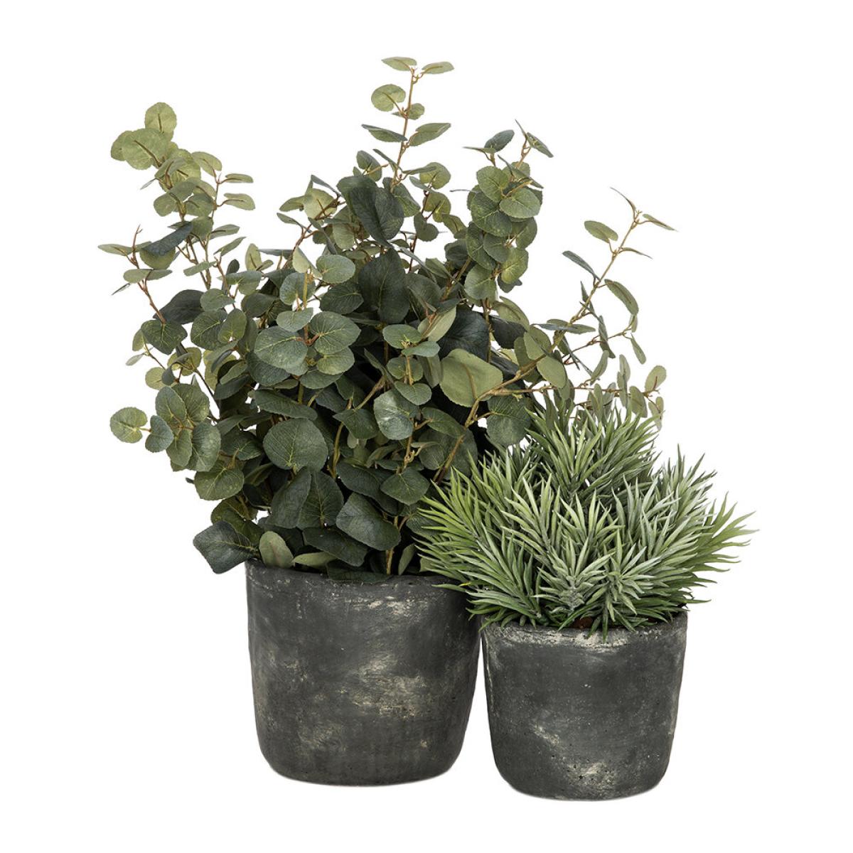rtfact - Eucalyptus & Spikey Succulent In Vase - Set of 2