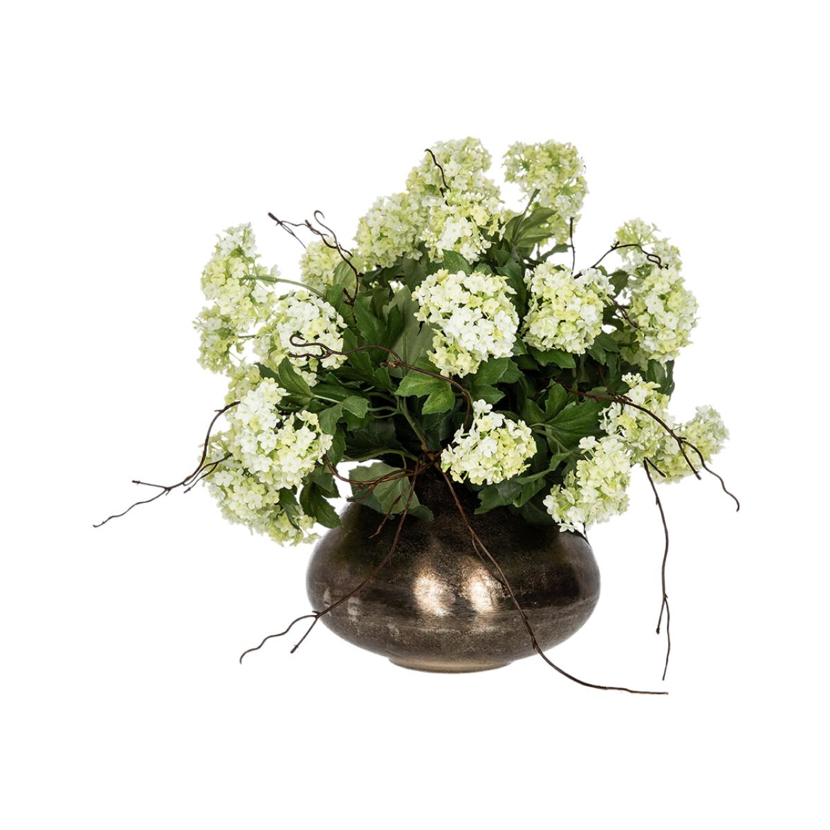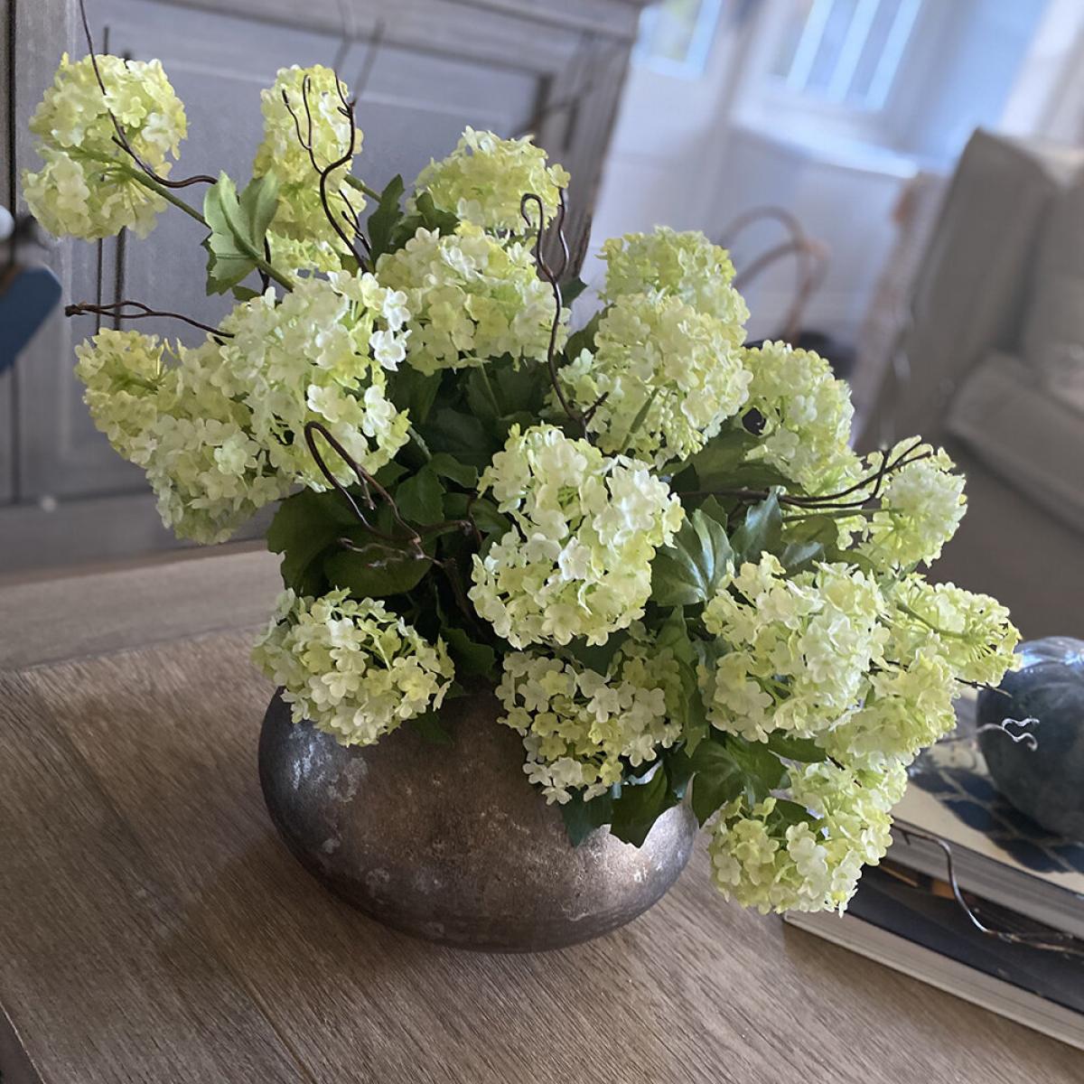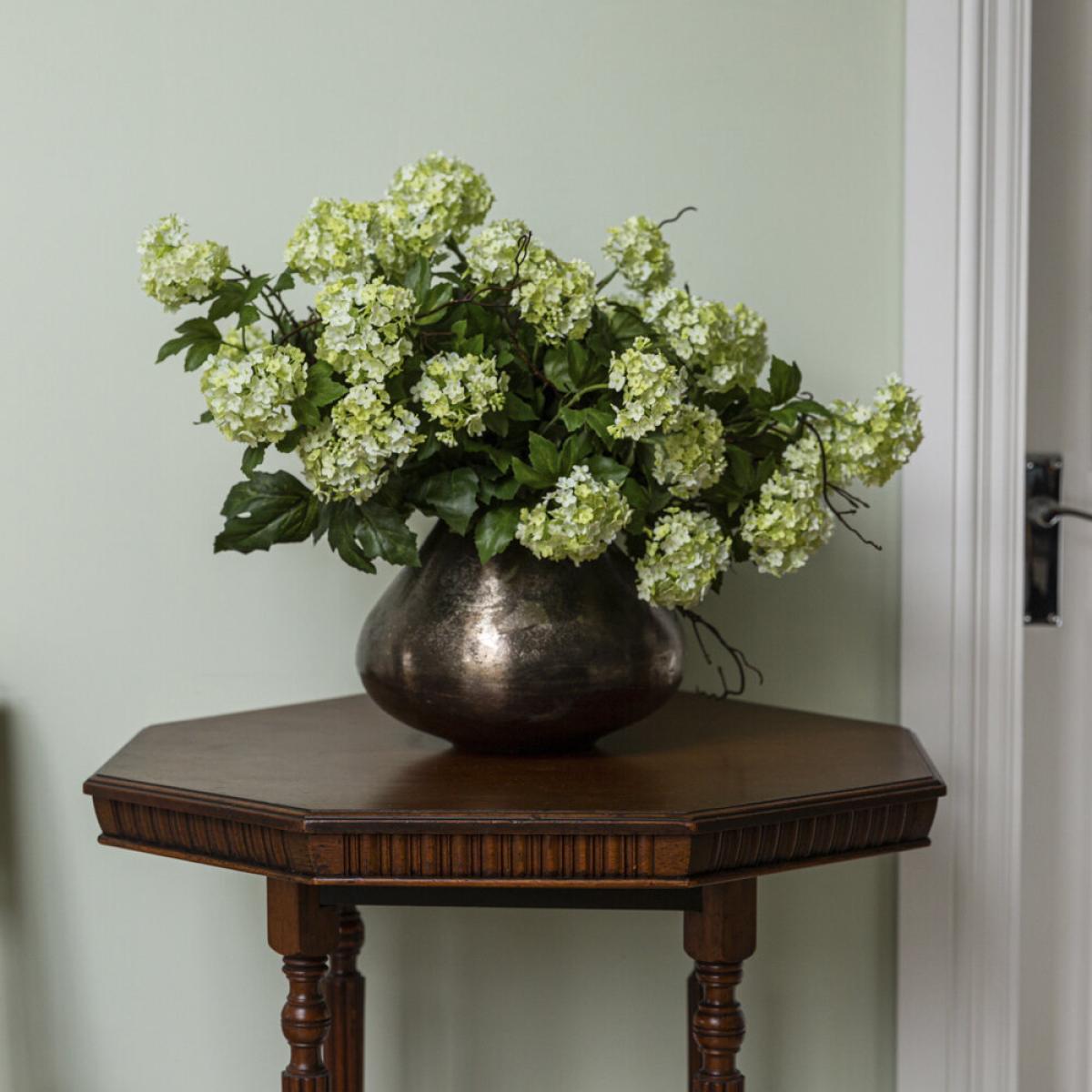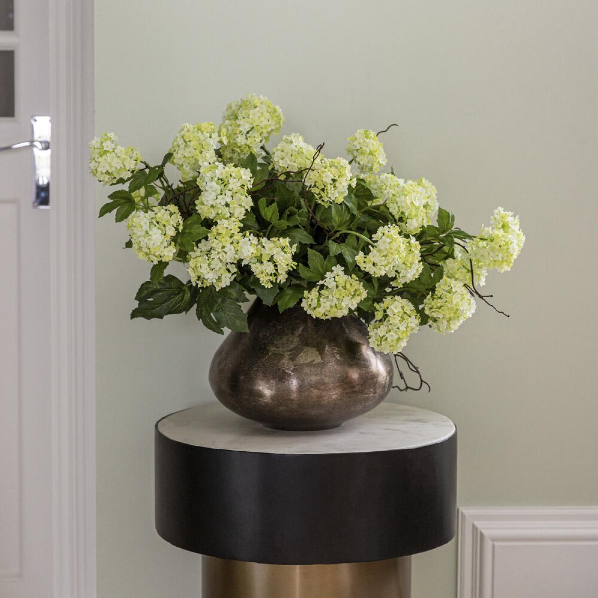 I love this little pot for adding a touch of natural elegance to a variety of interiors. Its nickel finish gives a modern, sleek edge that works particularly well in minimalist, contemporary, or industrial spaces. The Guelder Rose and twigs create a fresh, organic feel, making it perfect for dressing up side tables, shelves, or mantlepieces. For styling tips, consider pairing it with other metal accents or contrasting textures like wood or stone to enhance its visual appeal. It works well as a standalone centrepiece or grouped with similar floral arrangements for a more layered look. Practicality-wise, it’s a versatile piece that can easily be moved around to suit different spaces and occasions.