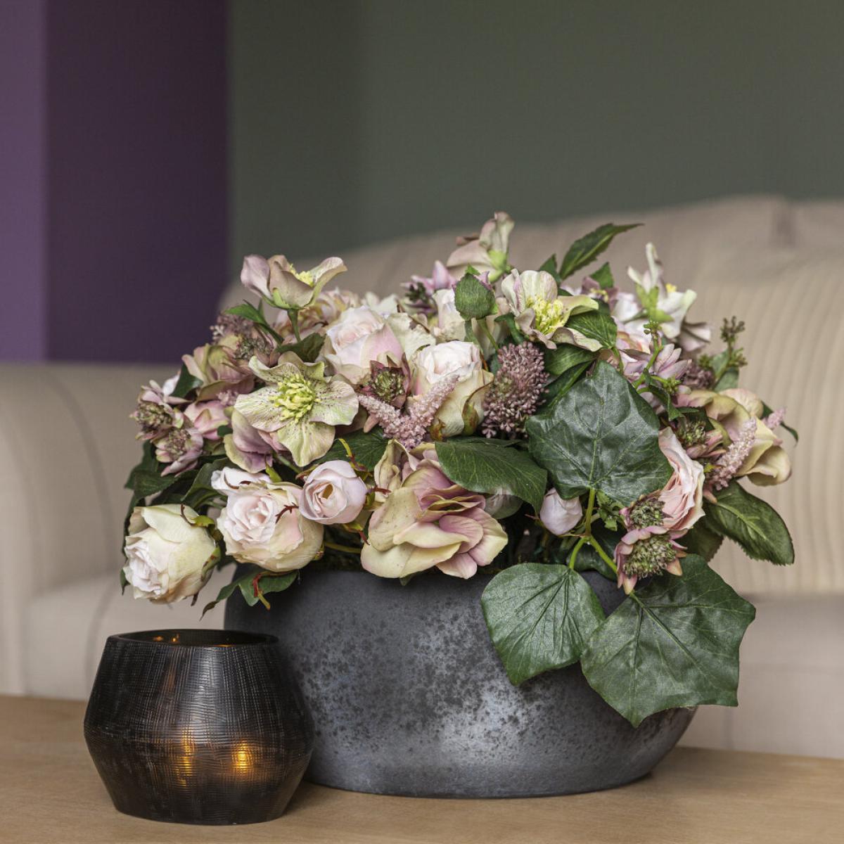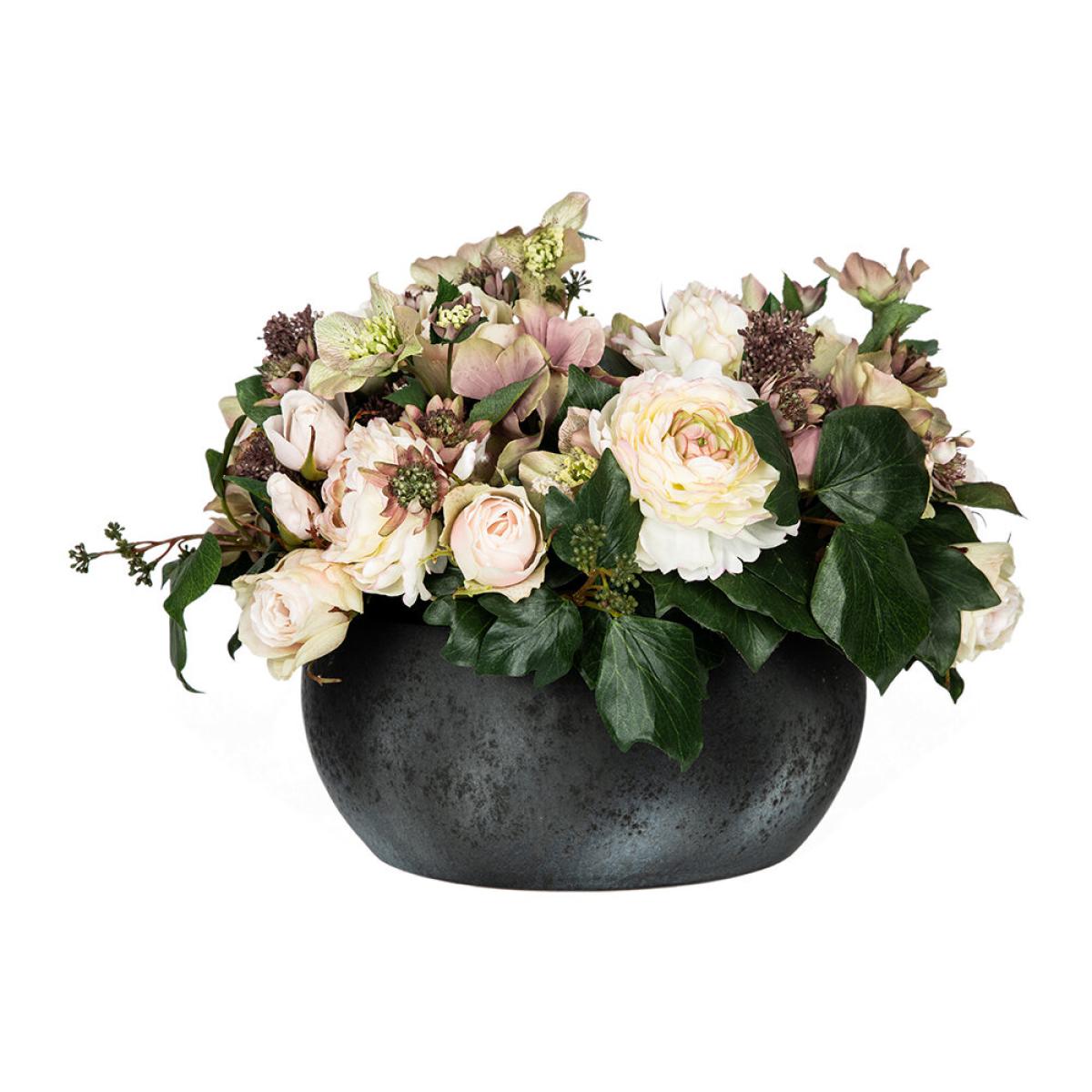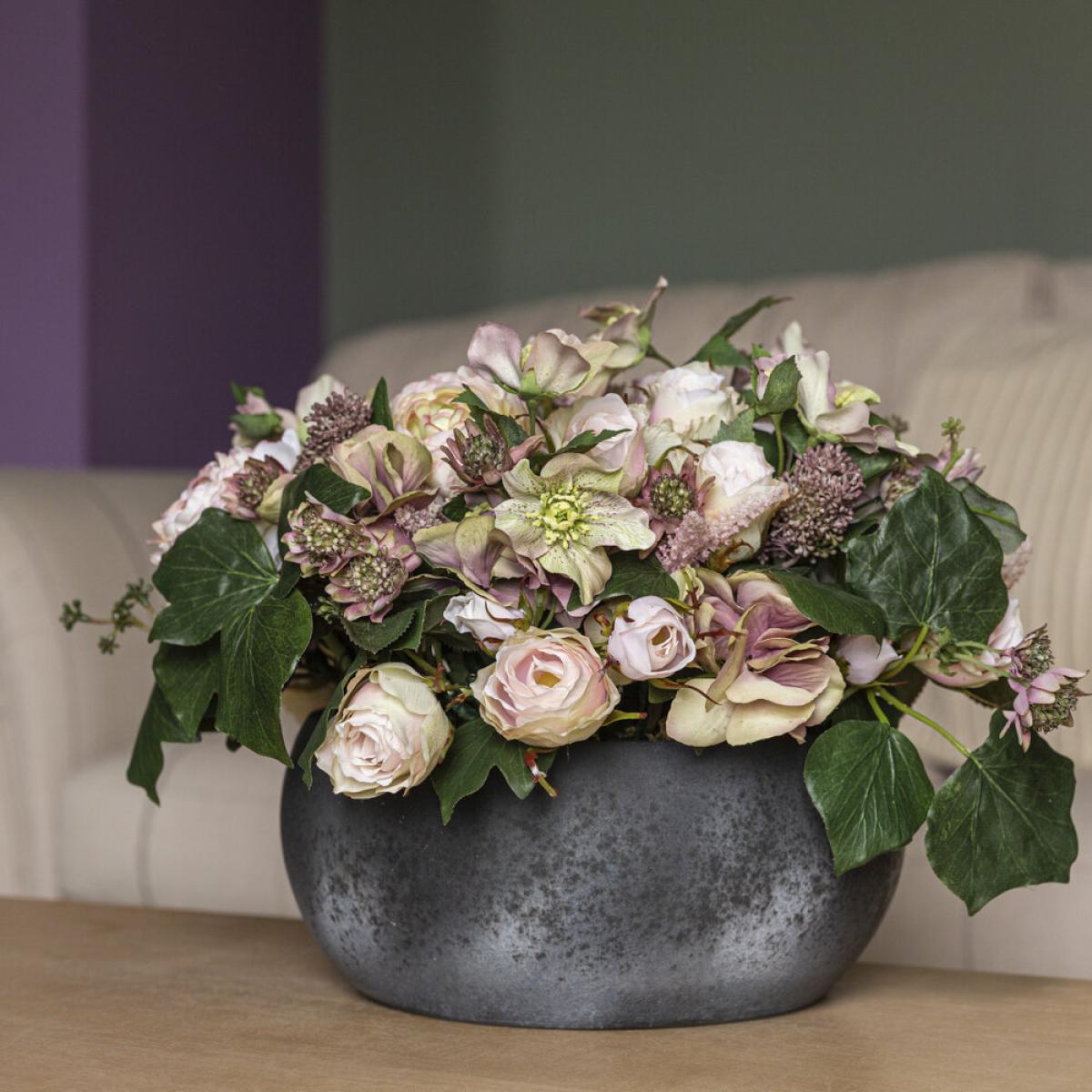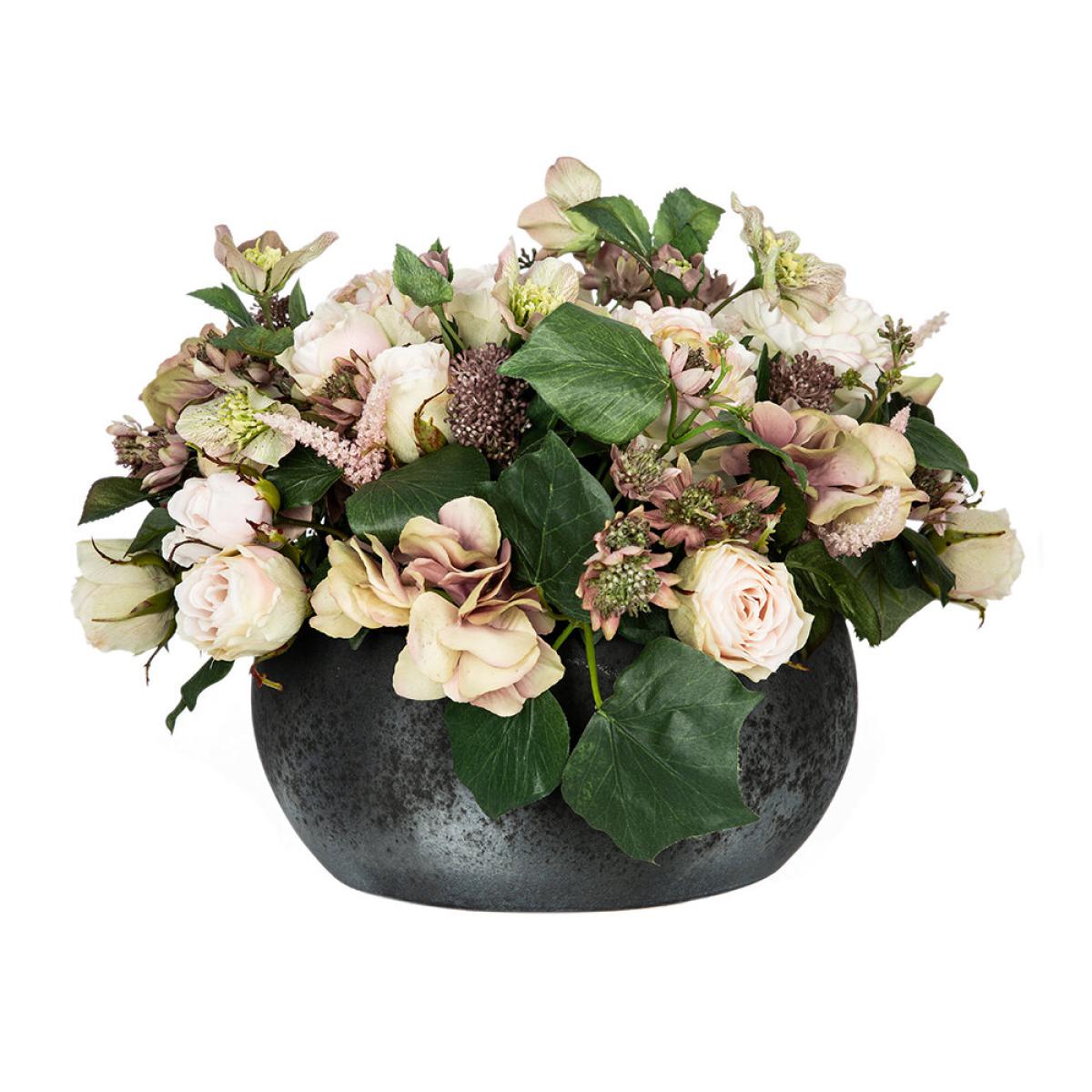 rtfact - Hydrangea Mix Arrangement In Grey Bowl - Vintage Pink