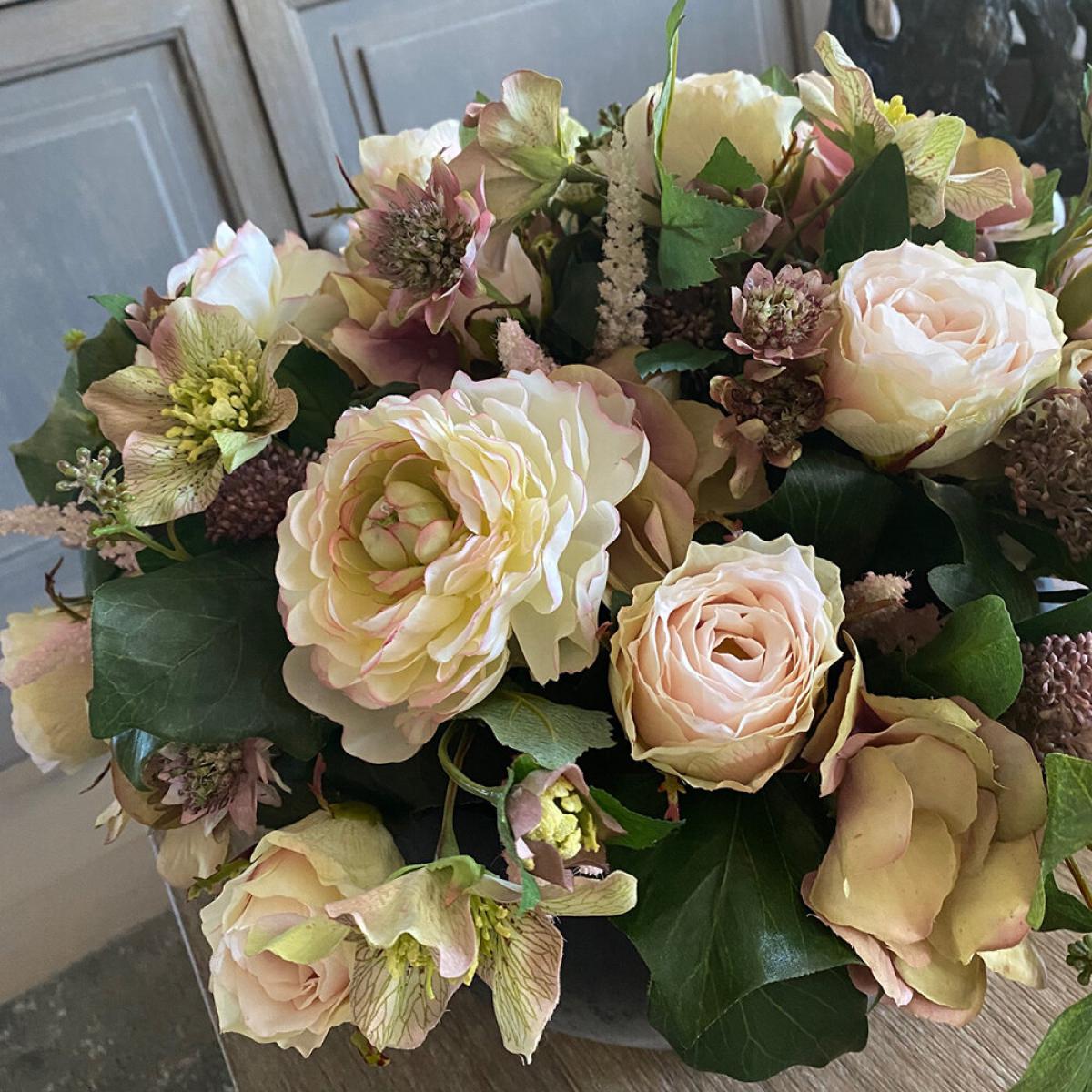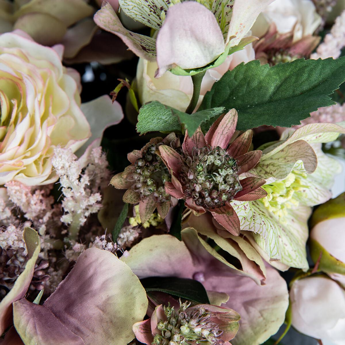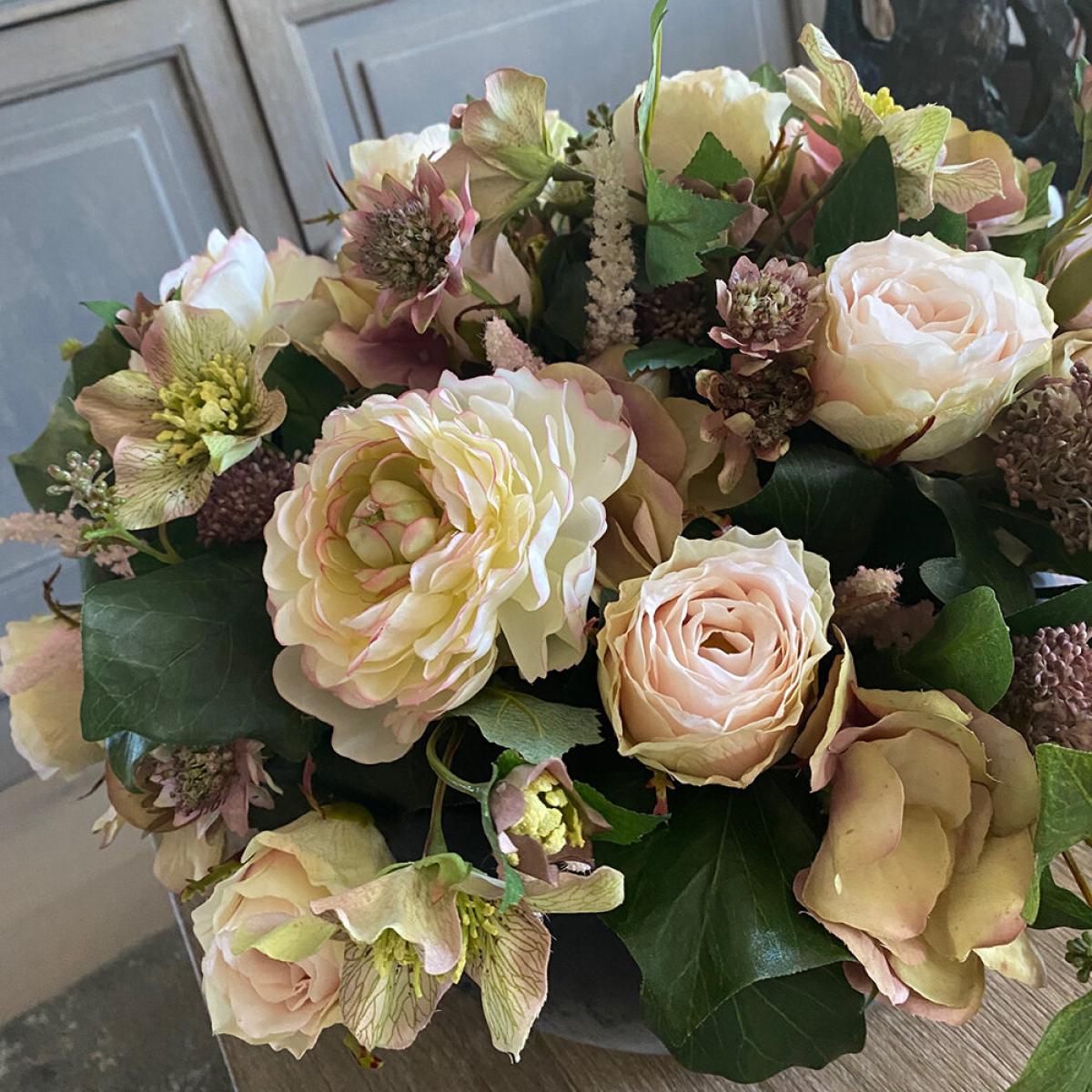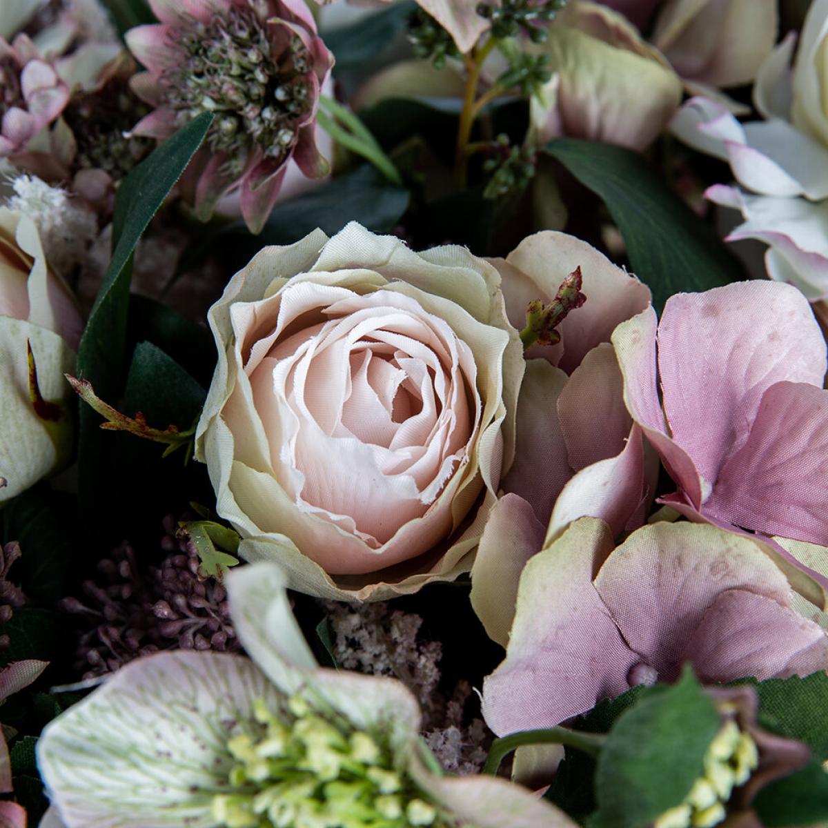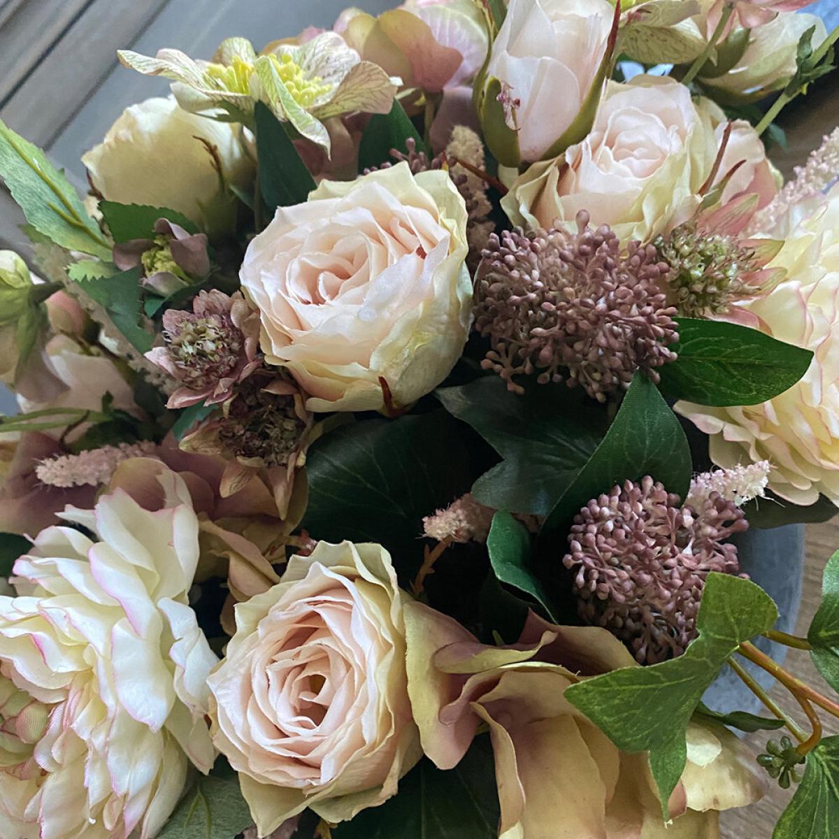 I love this rtfact arrangement - it offers a soft, vintage pink tone that brings a gentle touch of colour without overpowering a space. It works particularly well in interiors with a muted, boutique, or shabby chic theme, but can also add a classic charm to more contemporary settings. Practical styling tips include placing it on a console table or a sideboard to create a focal point, or using it to soften the edges of a dining or coffee table arrangement. Its faux nature makes it ideal for high-traffic areas or spaces with limited natural light where fresh flowers might not last, and it requires minimal maintenance while still delivering a lush, realistic aesthetic.