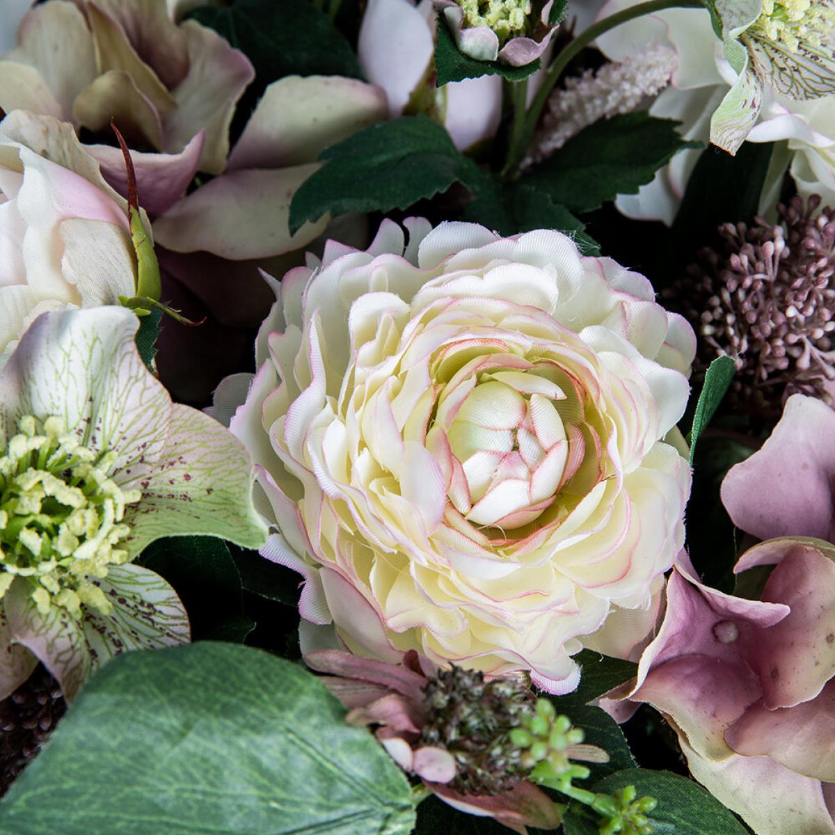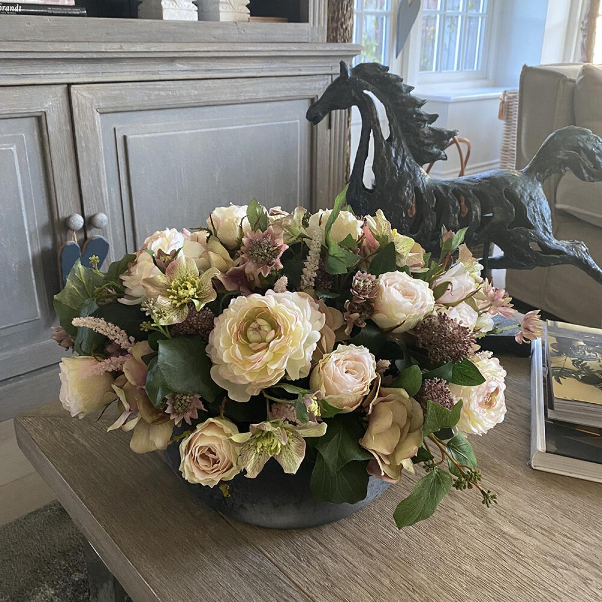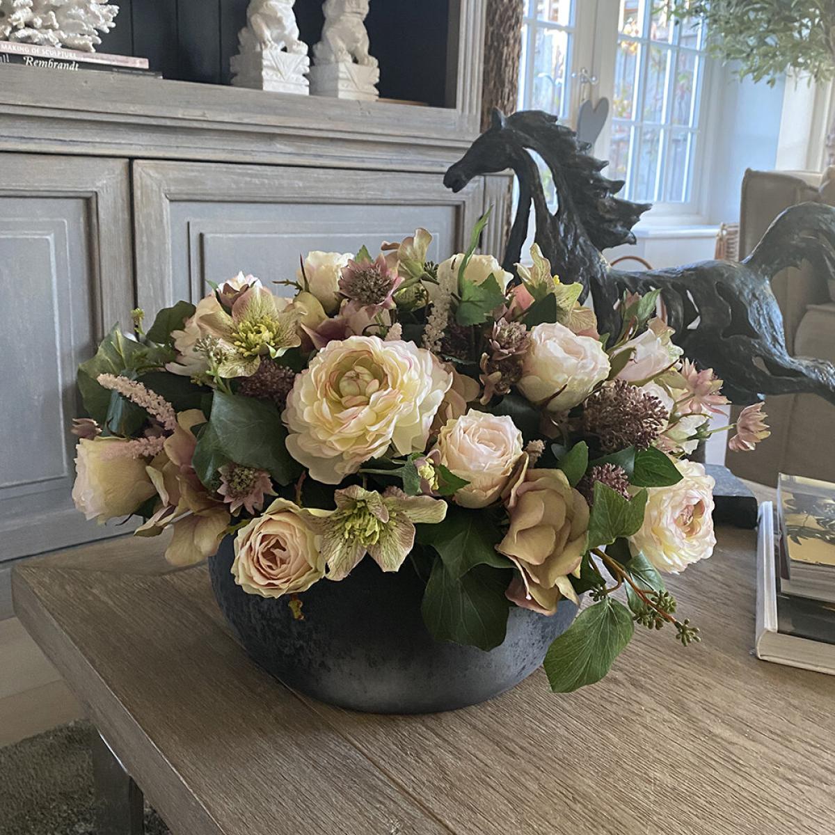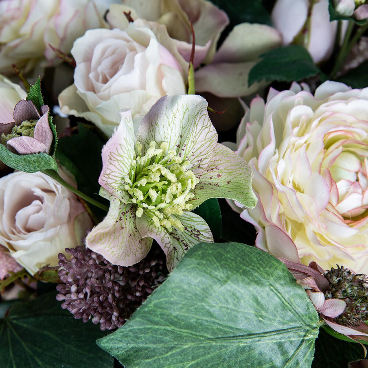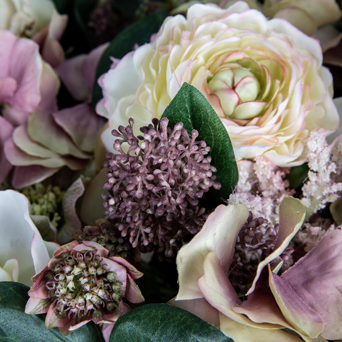 I love this rtfact arrangement - it offers a soft, vintage pink tone that brings a gentle touch of colour without overpowering a space. It works particularly well in interiors with a muted, boutique, or shabby chic theme, but can also add a classic charm to more contemporary settings. Practical styling tips include placing it on a console table or a sideboard to create a focal point, or using it to soften the edges of a dining or coffee table arrangement. Its faux nature makes it ideal for high-traffic areas or spaces with limited natural light where fresh flowers might not last, and it requires minimal maintenance while still delivering a lush, realistic aesthetic.