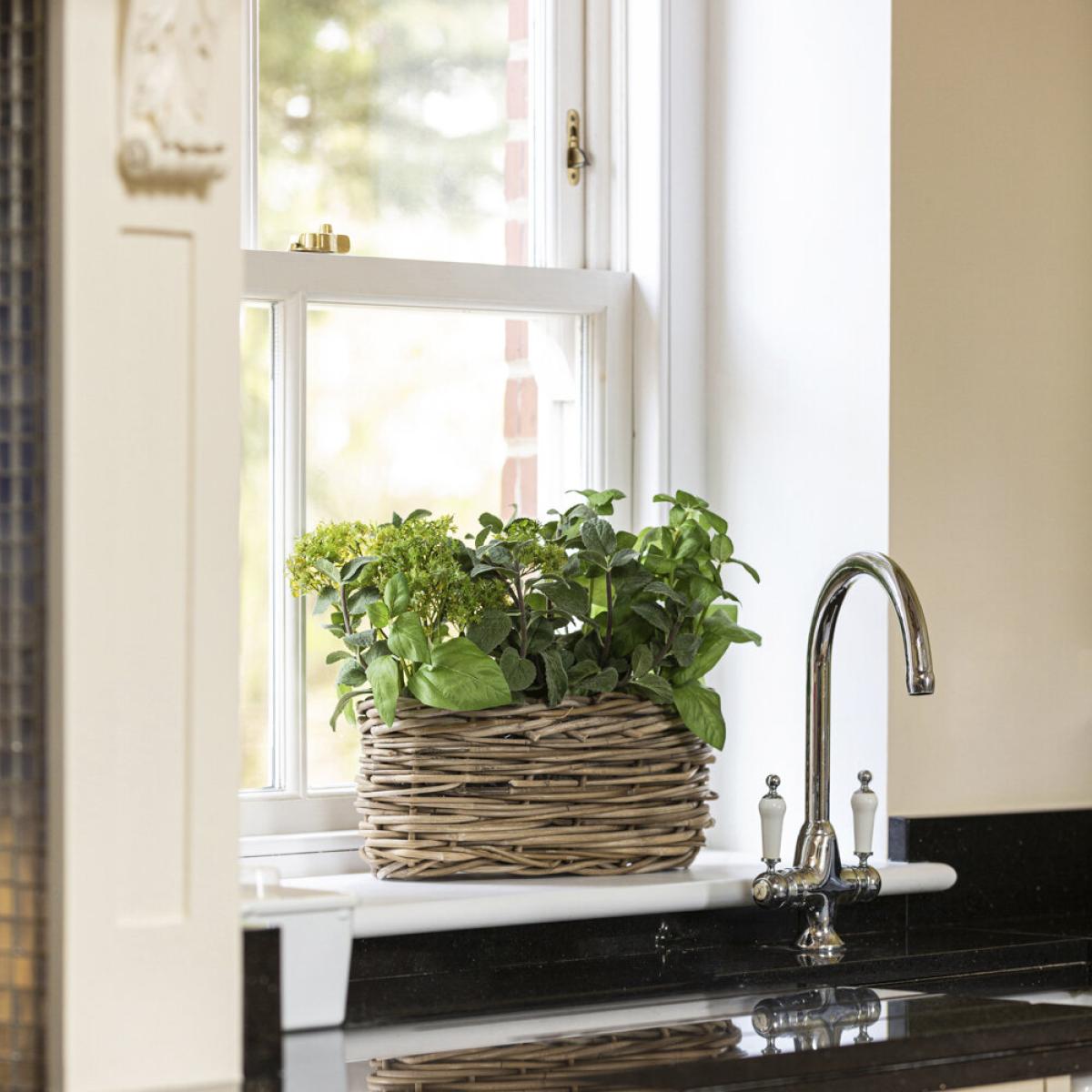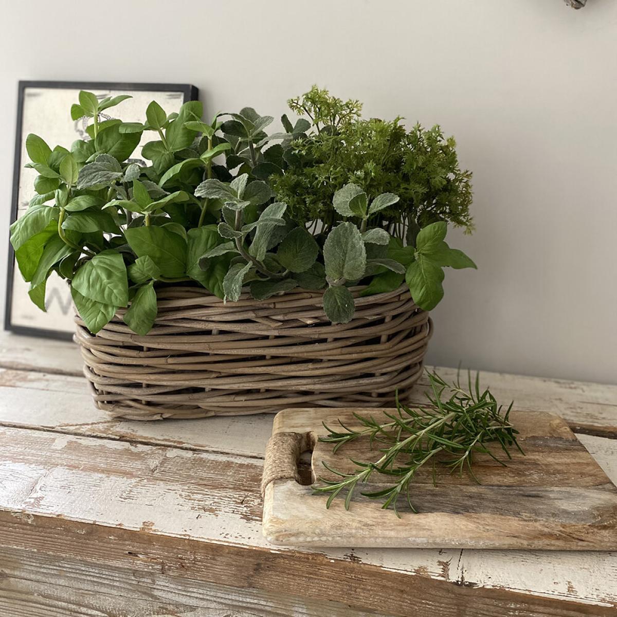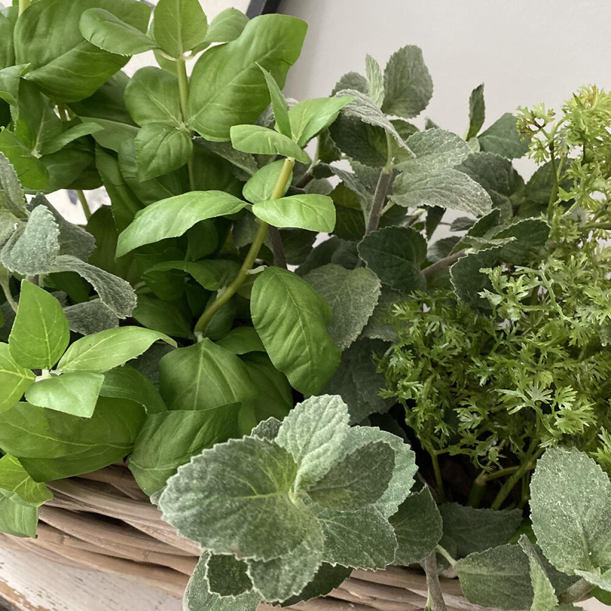 I love this rtfact basket for its versatility and natural look. It works well in a variety of interiors - from rustic country kitchens to modern minimalist spaces - adding a touch of greenery without the fuss of upkeep. The mix of herbs and greenery in the basket offers a relaxed, cottage-like vibe while maintaining a contemporary edge. For styling tips, try placing it on a kitchen windowsill, a dining table as a centrepiece, or even on a bathroom shelf to bring in fresh, organic feels. Pairing it with neutral ceramics or wood accents enhances its natural charm. Its compact size makes it perfect for small spaces, but it can also be grouped with other botanical accents for a layered, styled look.