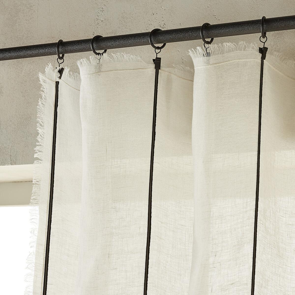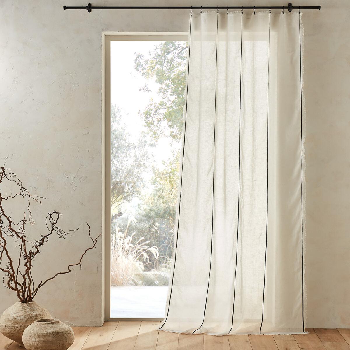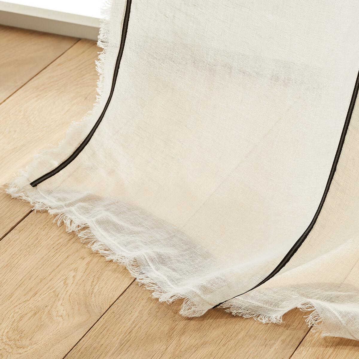 The Rubana voile panel is beautifully finished and creates a soft, delicate drape at your window in pure linen. Please Note: Our curtains are sold individually, not in pairs, which is common in Europe but less so in the UK. This is due to the wider variety of window sizes and shapes. You can simply buy as many (or as few) panels as you need, dependent upon the width of the window you are covering. All stated measurements refer to a single curtain panel. Product Details:. 100% linen. Contrasting ribbon in 100% polyester. Fringed edging. Care advice: Washable at 30°Sizes. Width 140 x drop 180cm. Width 140 x drop 220cm. Width 140 x drop 260cm. Width 140 x drop 320cm.