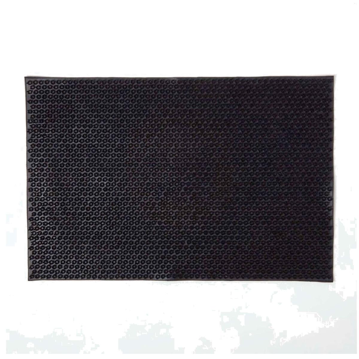 Homescapes' durable rubber door mat is perfect for scraping away mud and dirt from shoes. The unique small rubber tufts form circles resembling grass that effectively clean boots, wellies and football boots of debris. Its black color hides dirt and grime so it always looks tidy. Measuring 40cm x 60cm, it is large enough to accommodate several pairs of shoes yet compact enough for indoor use. With a tough rubber construction, it is very low maintenance and suitable for high-traffic areas inside or outside the home. Simply hose it off or wipe clean to prolong its lifespan. A stylish, high-quality, yet affordable way to keep floors protected from muddy messes.