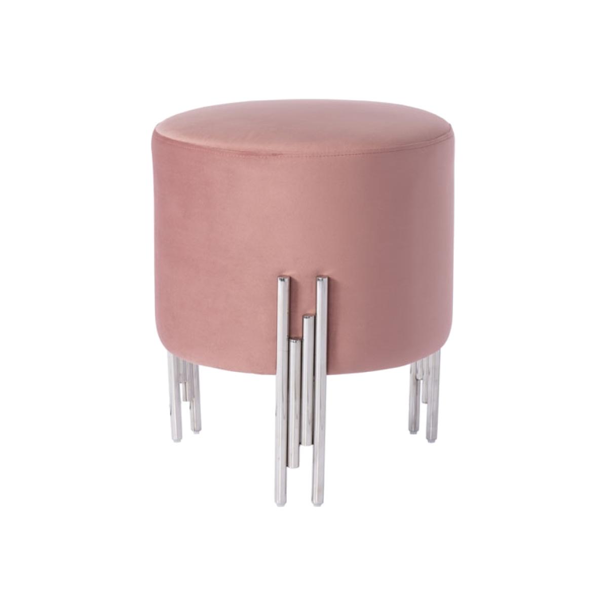 I love this blush pink stool with a silver base for its elegant yet playful design. It works particularly well in contemporary or glam-inspired interiors, adding a pop of colour while maintaining a sense of sophistication. It's versatile enough to serve as extra seating in a living room or a stylish accent piece in a bedroom or dressing area. Practical styling tips include pairing it with soft pastels or metallic accents for a cohesive look, and positioning it near a vanity or as a footstool for maximum functionality. Its compact size also makes it ideal for smaller spaces or areas where you want to introduce a touch of colour without overwhelming the room.