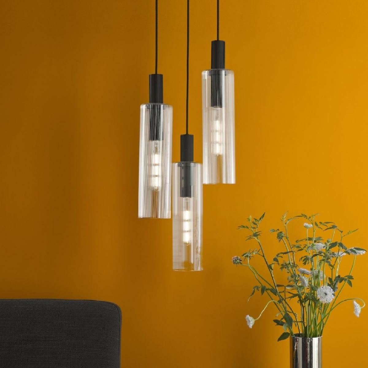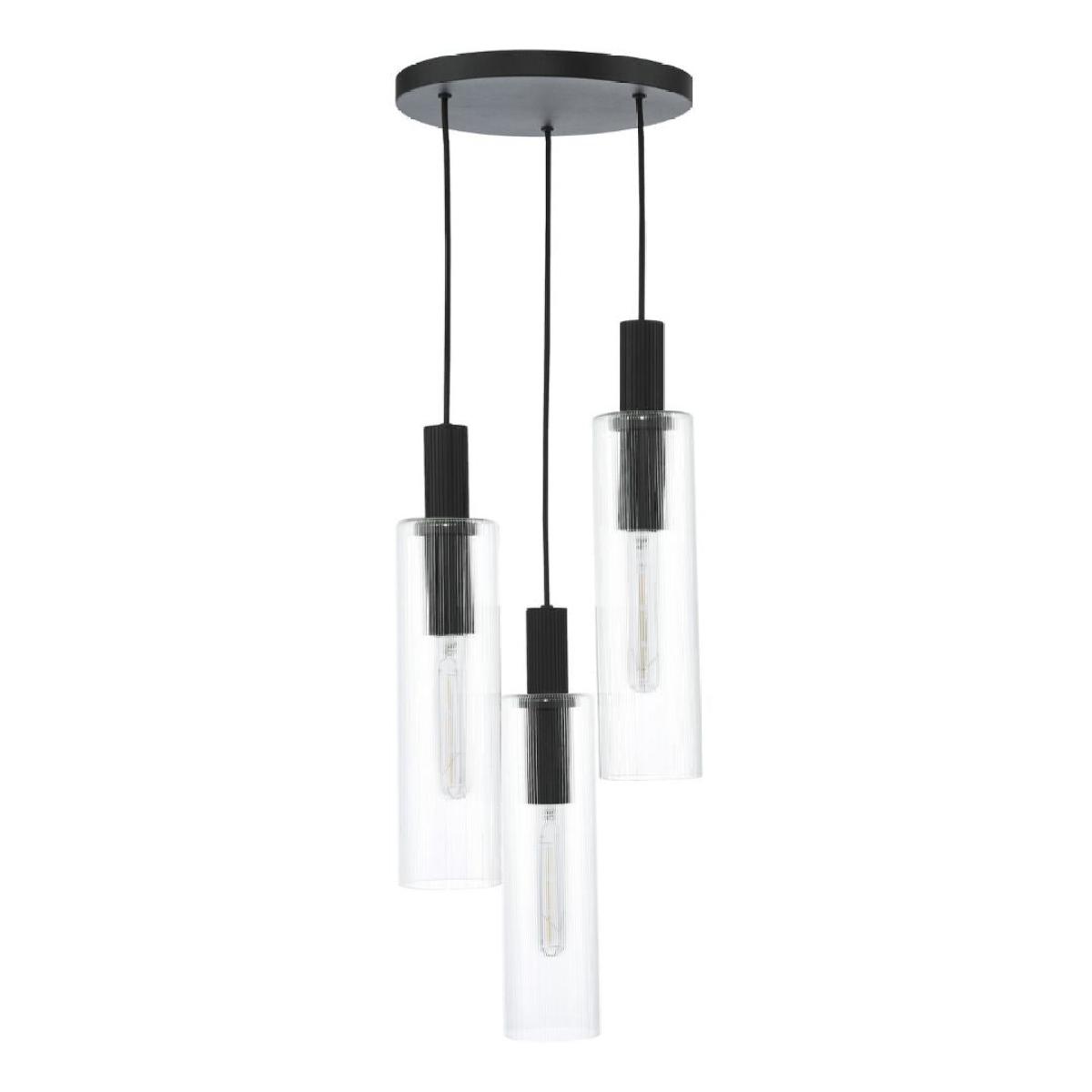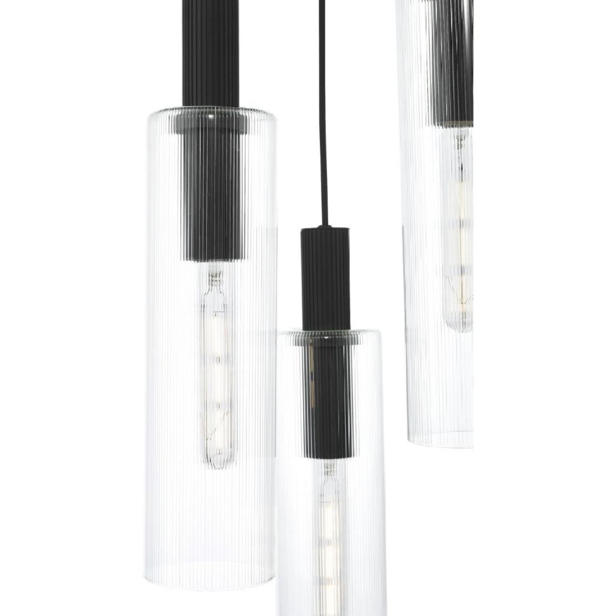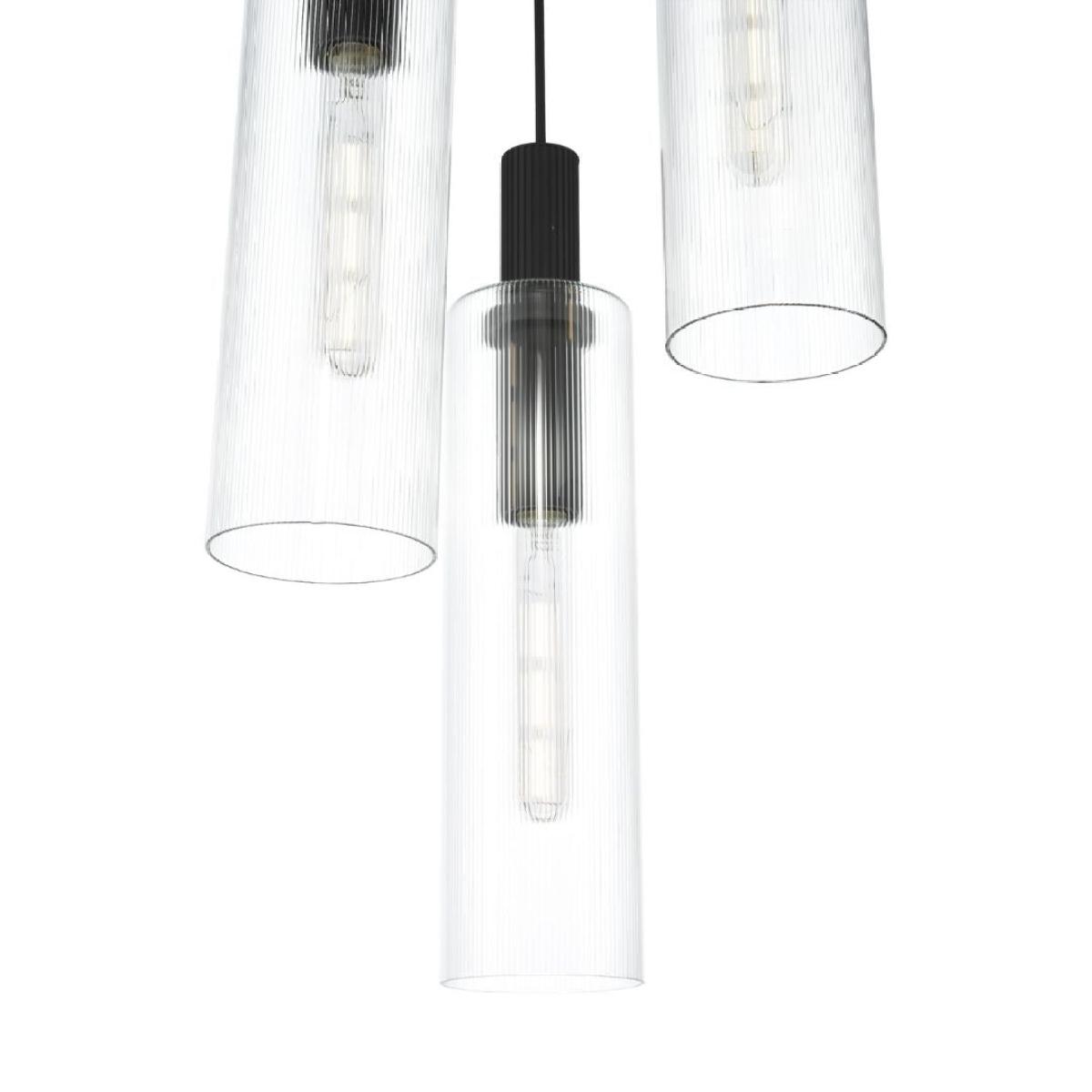 Ruben 3-light cluster pendant ceiling light with satin black finish and height-adjustable, ribbed glass shades. Height: 48-150cm Width: 32cm Weight: 1kg Max Wattage: 40w Height Adjustable Requires 3 x E27 bulb A masterful fusion of minimalist design and understated sophistication, this cluster pendant features a sleek satin black finish that exudes modern elegance, making it a versatile addition to any space. The ribbed glass shades - which can be positioned at any height along with the frame - add a touch of texture and visual interest, while softly diffusing the light to create a warm and inviting ambiance. Whether suspended above a kitchen island, dining table or hallway, the Ruben cluster pendant seamlessly blends form and function, making it perfect for contemporary interiors.