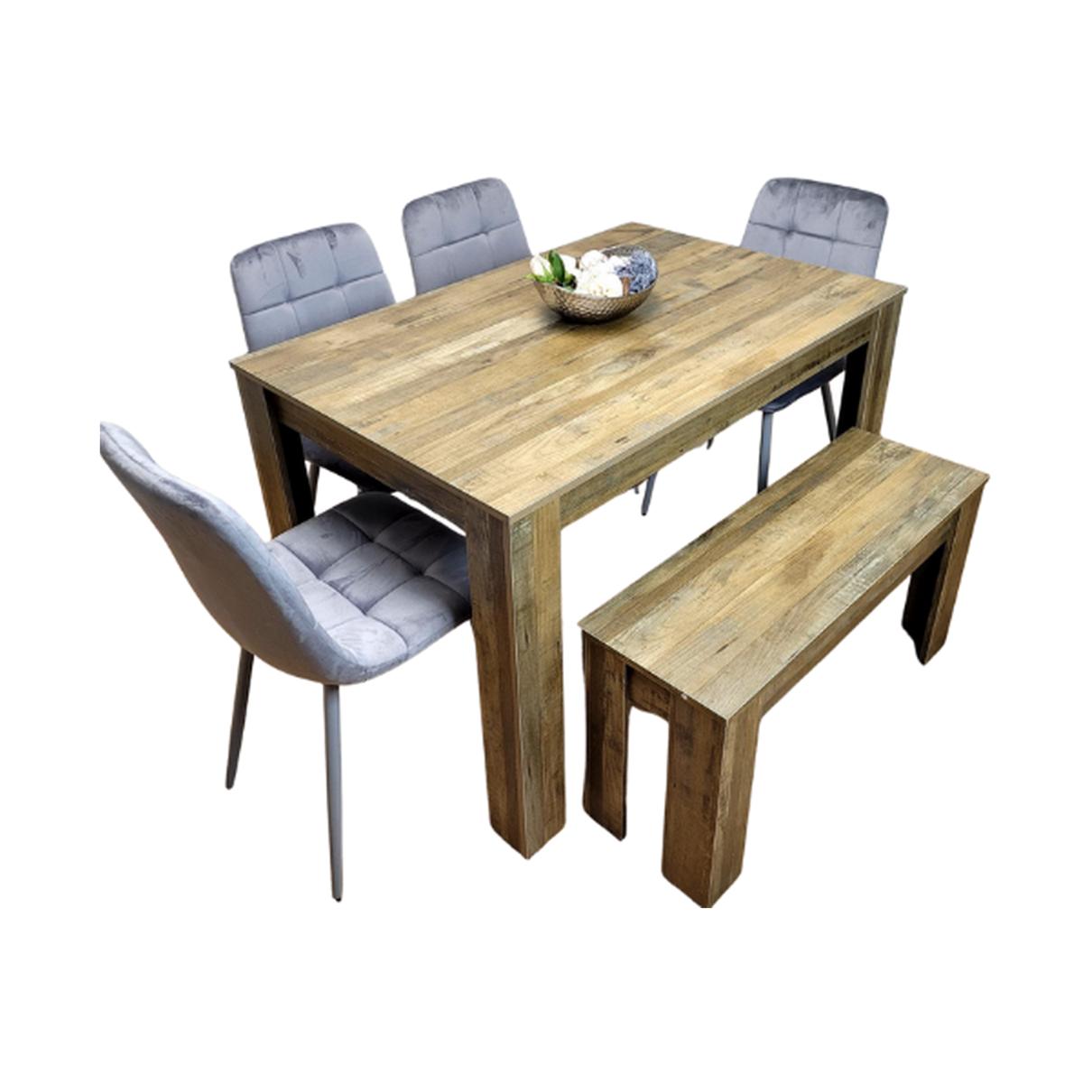 Ruben Dining Table 4 Chairs and Bench - Rustic Effect