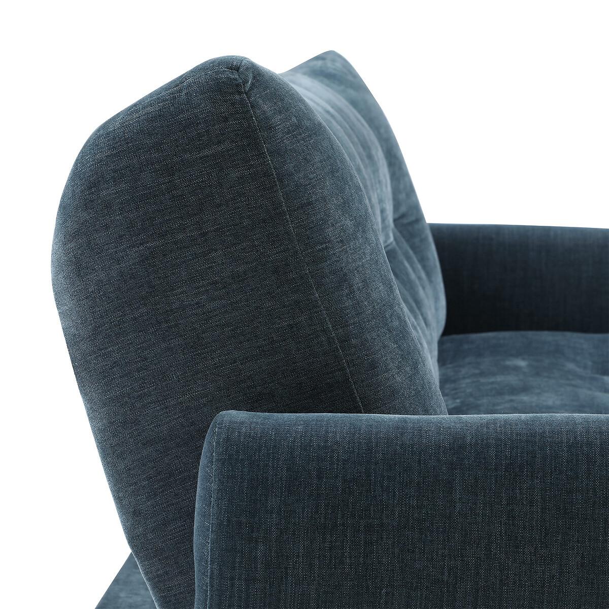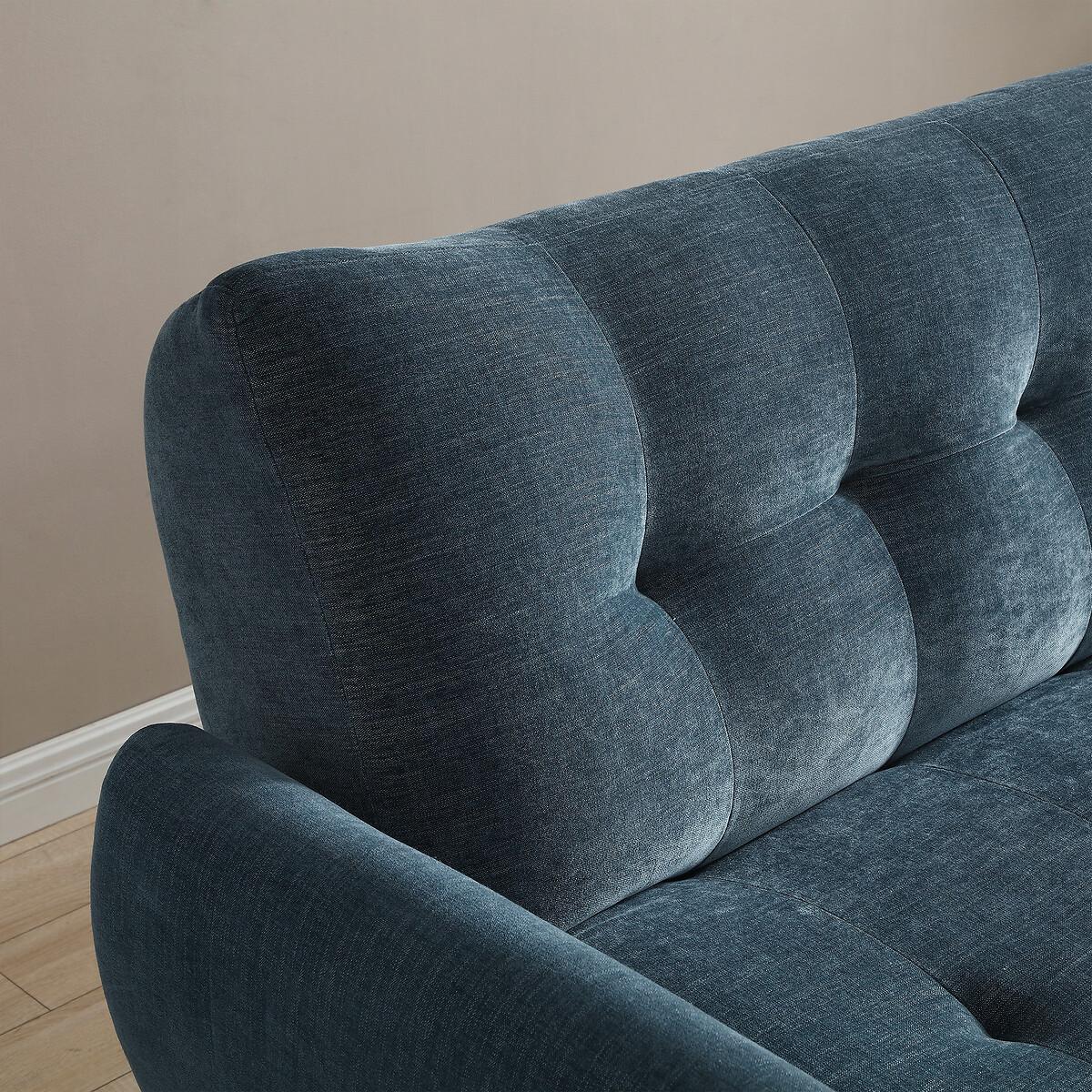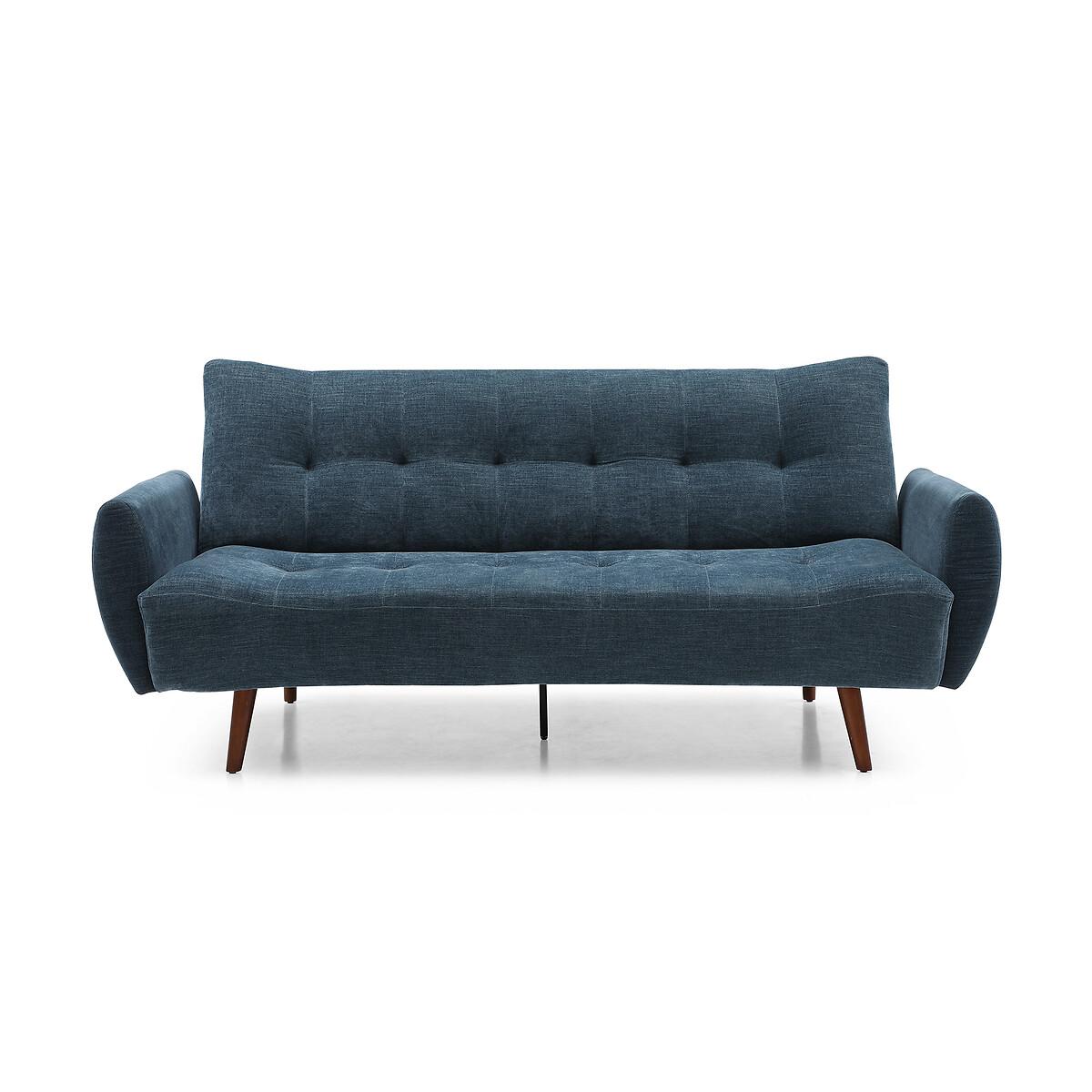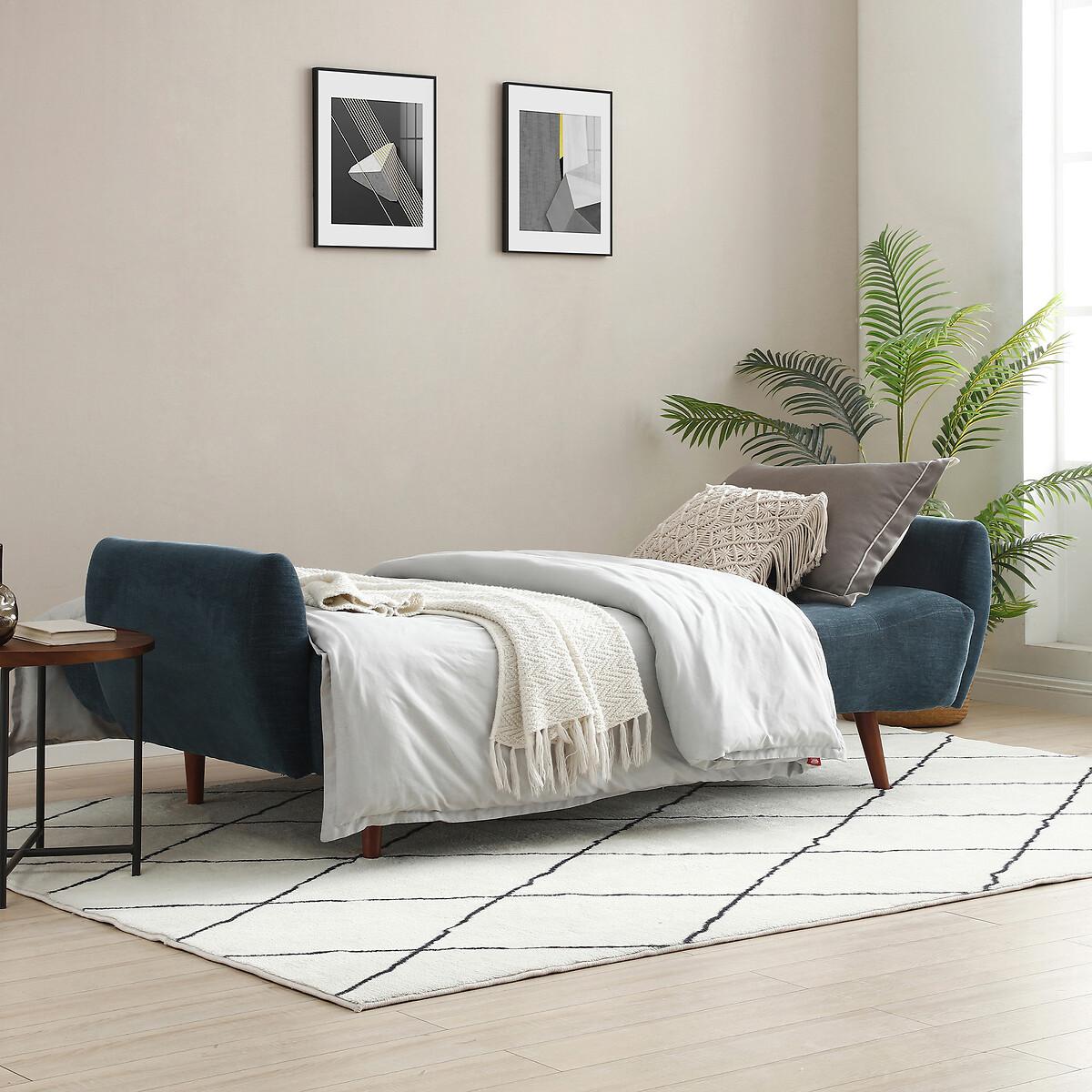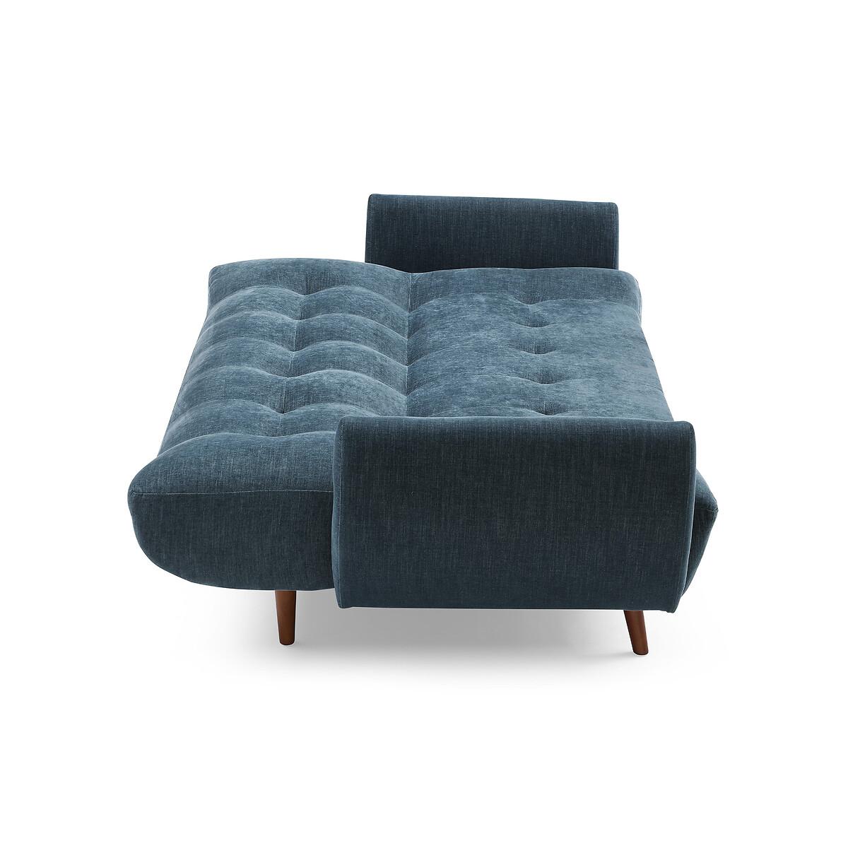 A stylish click clack sofa bed in a modern design, with dark wooden legs. Comfy foam & fibre seat and back cushions offer the perfect blend of support and softness. A versatile and functional addition to any room. Product Details • Upholstered in a chenille fabric with tufted button detail • Easy clean upholstery • Sprung seat with foam fillings • Soft stuffed fibre filed back cushions for that sink in feeling • Medium comfort level - the perfect balance of supportive yet soft • Walnut finished legs • Click clack opening mechanism • Converts into a bed suitable for two sleepers (156cm x 218cm) • 12 month manufacturers warranty • EUTR Compliant, BS5852 compliant • Assembly required (legs/feet only)Product Composition - Frame - Eucalyptus Fabric - 100% polyester chenille Seat fillings - foam on pocket spring Back filings - fibre. Product Dimensions - 102 cm x210 cm x93 cm , Weight - 52 KGSeat Height - 46 cm. Seat Width - 189 cm. Seat Depth - 58 cm. Back Height - 46 cm Clearance to floor - 18 cm. Arm Height - 68 cm Package Dimensions - 191 cm x 125 cm x 29 cm, Weight 56 kg. This product will be dispatched by one of our trusted suppliers. You’ll be contacted by their selected courier about your delivery. Please note: this product cannot be delivered to all Offshore Islands, Northern Ireland or Republic of Ireland.