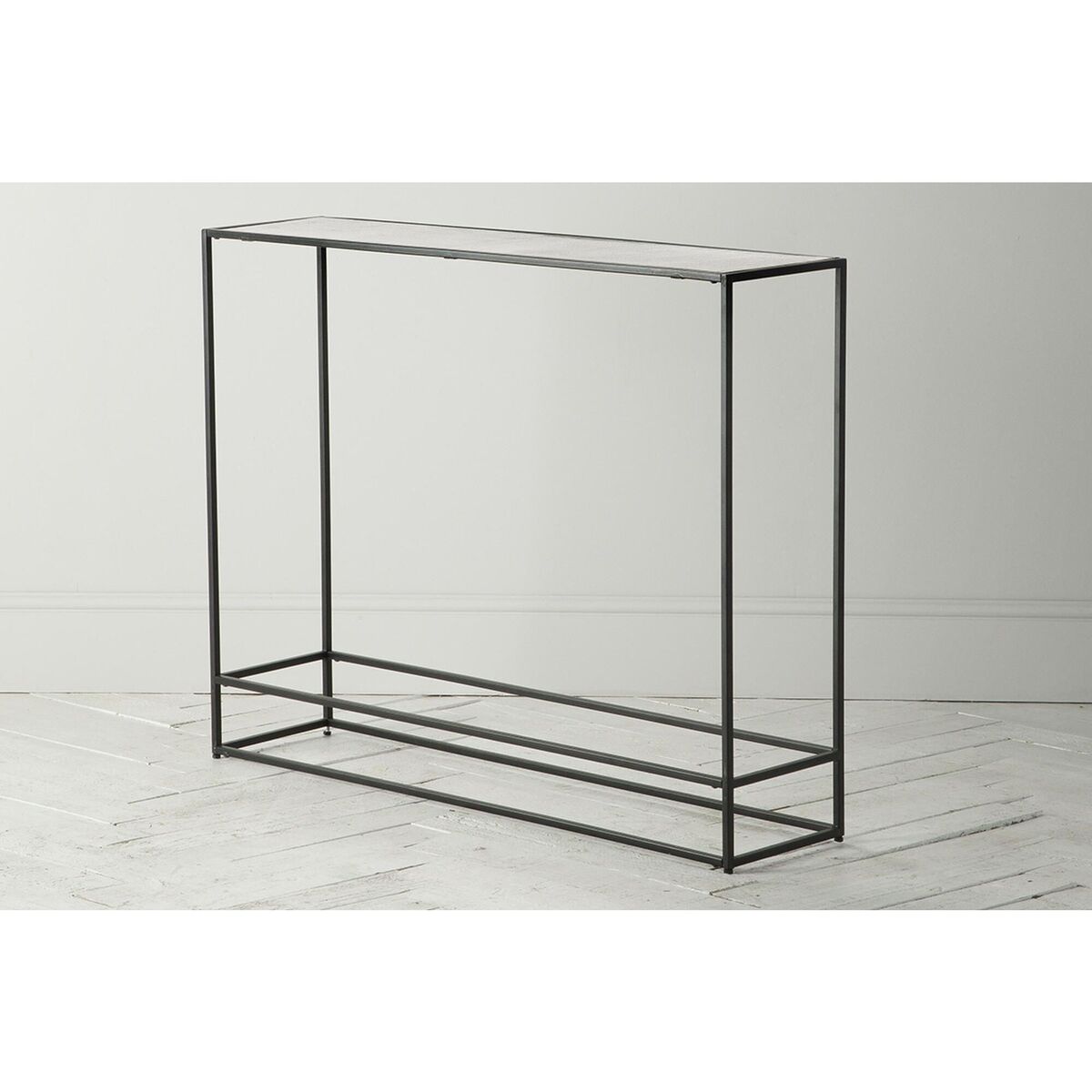 I really like this side table's sleek, modern look, especially with its antique silver finish which adds a touch of vintage charm. It works well in both contemporary and transitional interiors, particularly if you want to introduce a bit of shine without overpowering the space. Practical styling tips include using it as a hallway console with a tray for keys or styling with a mix of minimal vases and statement lamps for a chic look. Its open design makes it perfect for smaller spaces, giving an airy feel while still providing surface area for decorative accents or everyday essentials.