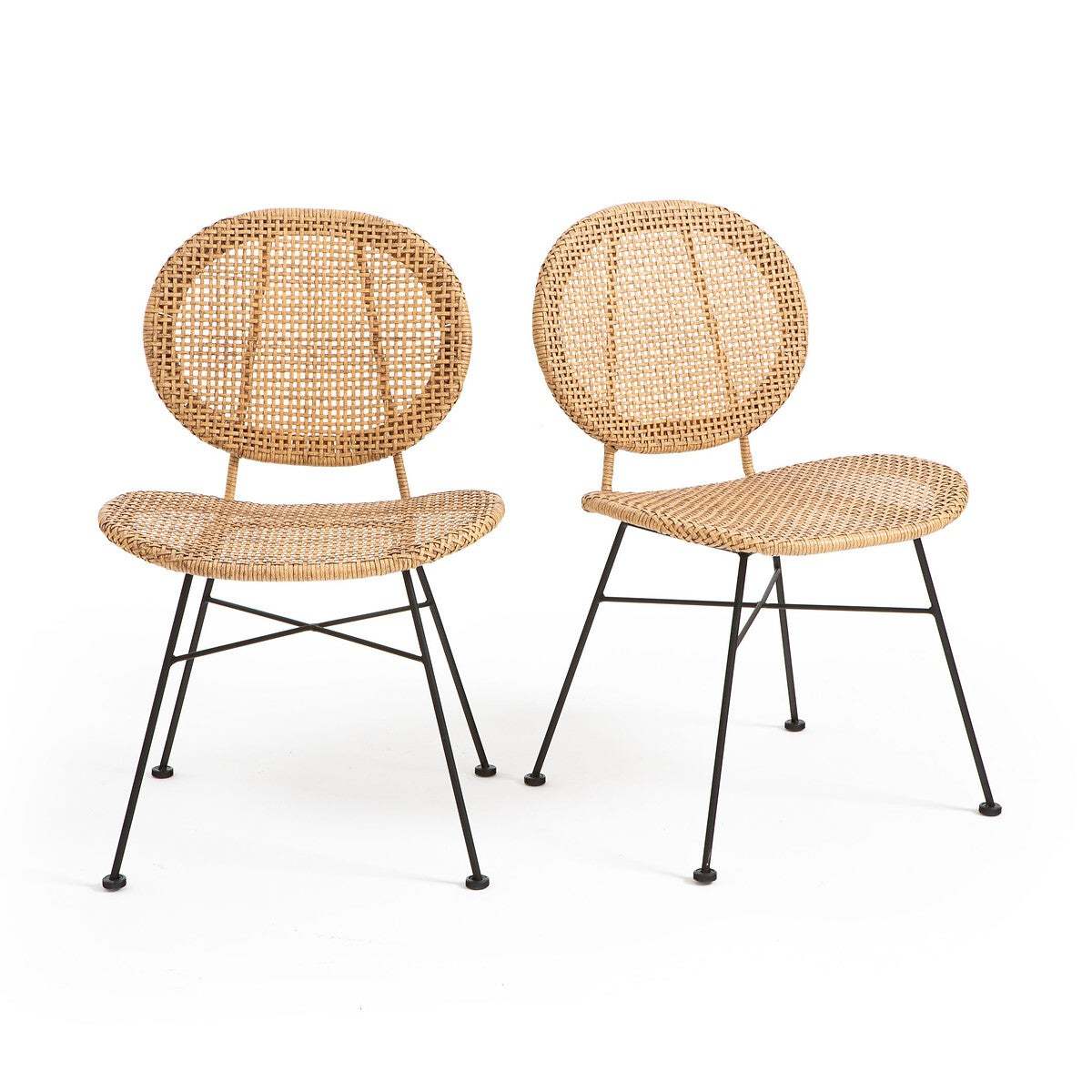 Bring a touch of originality to your outdoor space with these Rubis woven resin garden chairs. The wide seats provide exceptional comfort. They're designed for the outdoors but would also look great inside to bring an exotic feel to your decor. Product Details. Set of 2 chairs. Structure and wired frame in black metal, epoxy finish. Seat and back covered with natural colour braided resin. 4 plastic feet. Additional Information. The resin is very resistant to weathering, temperature variations and UV rays. Its lifespan will nevertheless depend on its exposure to UV, moon rays and temperature variations. To maintain the braided resin, simply wash it with a soft sponge in soapy water. Browse the Rubis collection online at La Redoute..Dimensions. Length : 55cm. Depth : 56.5cm. Height : 84cm. Dimensions of backrest: L47 x H57.5cm. Dimensions of seat: L55 x D43 x H45.5cmDelivery:. Your chairs will be delivered for self-assembly! Note! Please check that all access points are large enough to accommodate your delivery (doors, stairs, lifts).Dimensions and weight of parcel. 1 parcel : L61.5 x H53.5 x D58.5cm. 16kg.