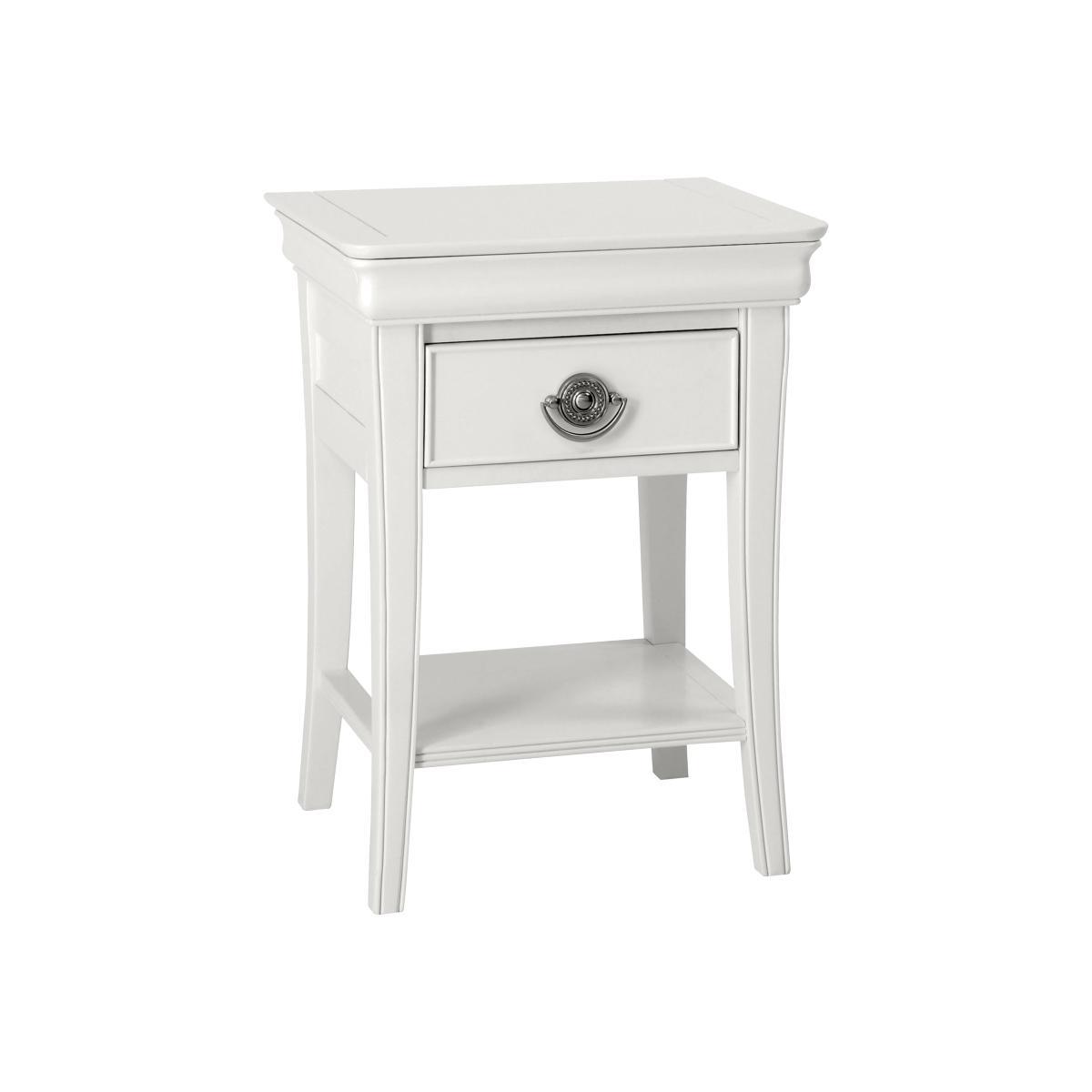 Elegant night stand in the exquisite white painted French style, with a smooth, soft close drawer and a durable white matt lacquer finish. Why youll love it Timeless elegance never goes out of fashion. Classic white painted French style. Corniced top, shield- shaped drop drawer handle. Curved, tapered legs. Crafted from solid American poplar wood. Finished with an easy- to- clean white matt lacquer. Soft- close drawer, useful shelf below. What you need to know Made from solid American poplar wood and veneer. Finished in a durable white matt lacquer. Part of the Ruby White bedroom range, including chests of drawers, wardrobes and a dressing table. WARNING! Furniture can tip over unexpectedly and cause injury. This item must be fixed to a wall using the anti- tip kit provided. Be sure to use the correct wall fixings suitable for the walls in your home. Furniture Village is not able to fix anti- tip devices for you. Seek professional advice if you are unsure.