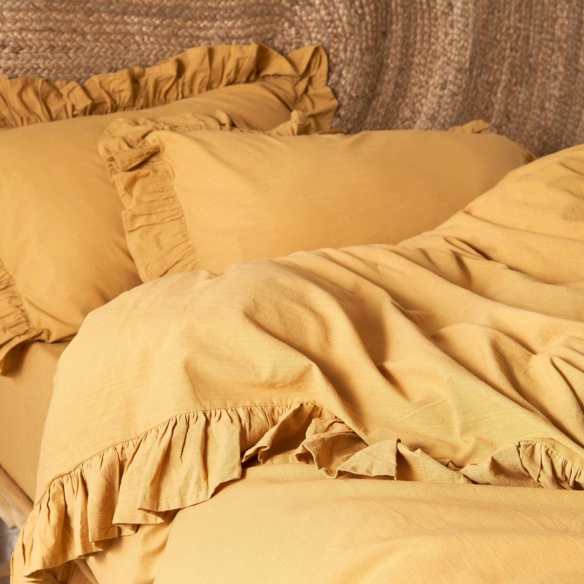 Ruby 100% Turkish Cotton Duvet Cover Set + Fitted Sheet, Mustard, Super King Size