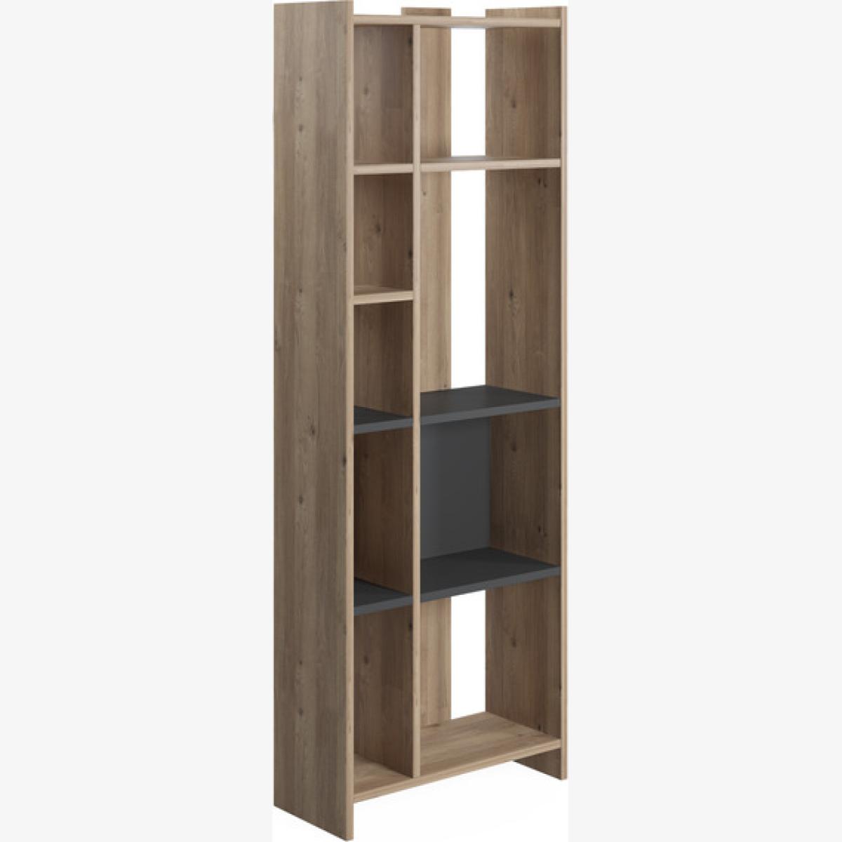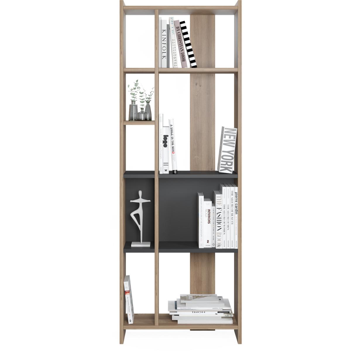 Ruumstore Ruby bookshelf, 59*27*165, 2 colour bookshelf with extra open shelves and wood frame. It has a easy assemble with minimum tools required. How about making room for a different and useful bookcase design in your home Coming to the fore with its modern lines, useful backed structure and large storage possibilities, the Ruby Bookshelf will suit your home very well! While storing your books, do not compromise on both elegance and function. If you want to add both functionality and a stylish touch to your home, the Ruby Bookcase is for you! Moreover, it offers the opportunity to be combined with other pieces of the Ruby collection.