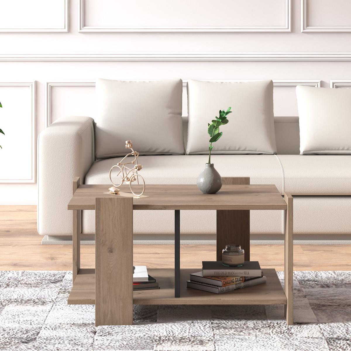 Ruumstore Ruby coffee table, 79*54*44, 2-colour coffee table, wood frame. It has an easy assemble with minimum tools required. The Rubby Coffee Table, which you can easily use in every area with its ergonomic dimensions, also provides ease of cleaning with its high leg structure from the ground. Standing out with its stylish and different design, Rubby offers a functional use in narrow spaces and conquers the hearts of those looking for a stylish touch in its decoration. Moreover, it offers the opportunity to be combined with other pieces of the Ruby collection.
