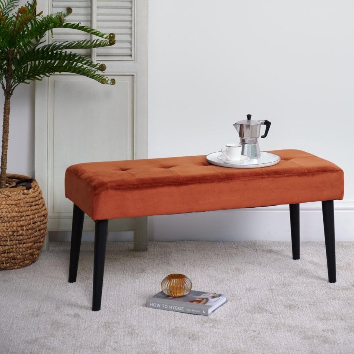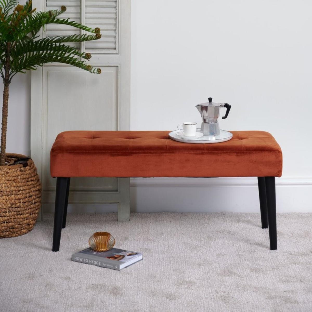 I love this bench for its bold copper finish, which adds warmth and a touch of industrial edge to a variety of interiors. It works particularly well in contemporary, minimalist, or mid-century styled spaces, where it can serve as a statement piece or functional seating at the foot of a bed, in an entryway, or even in a living room corner. Practical styling tips include pairing it with textured cushions or a chic tray for added functionality, or letting its rich hue stand out against neutral colour palettes. Its sleek design and versatile size make it a great choice for both small and larger rooms, offering both visual interest and practical seating options.