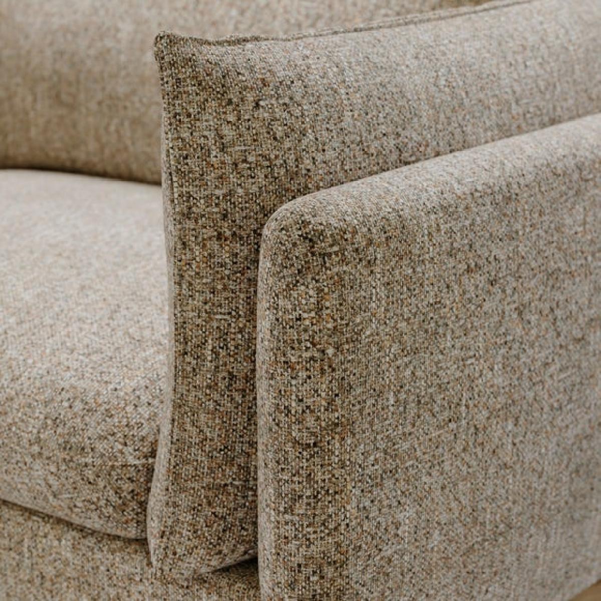 I love this chunky chenille sofa for its cosy yet stylish appeal - perfect for creating a welcoming living space. Its plush fabric adds texture and comfort, making it ideal for both casual family rooms and more relaxed, boutique-style interiors. It works particularly well with neutral tones and layered textiles, such as soft throws and textured cushions, to enhance its tactile quality. For styling tips, consider pairing it with a mix of modern and vintage accents to keep the look contemporary but inviting. The sofa’s substantial feel lends itself to a laid-back vibe, so placement in a social or lounging area will really maximise its comfort and style appeal.