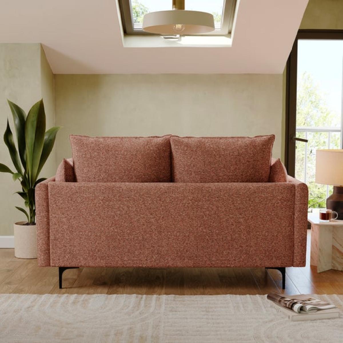* Sleek, modern sofa * Knife edge cushions * Foam and Fibre filled seat * Metal legs The Ruby sofa in a chenille fleck fabric is a beautifully balanced piece that brings together compact proportions and contemporary design. Its sleek silhouette is defined by knife-edge cushions that offer a crisp, tailored finish, while the soft chenille fleck upholstery adds a gentle texture that enhances the overall comfort. The upholstered plinth base grounds the design with a modern edge, making it a versatile choice for smaller living rooms, apartments, or as a complementary piece in a larger seating arrangement.