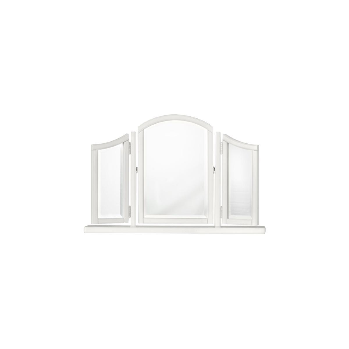 Classic white painted curved top mirror, perfect paired with the Ruby dressing table. The French painted look but with a very practical strong white matt lacquer finish. Why you’ll love it. Timeless elegance never goes out of fashion. Classic white painted French style. Beautifully curved top, solid base. Hinged, so the mirror can be adjusted to give angled views. Crafted from solid American poplar wood. Finished with an easy-to-clean white matt lacquer. What you need to know. Frame is solid American poplar wood and veneer. Finished in a durable white matt lacquer. Mirrored glass. Part of the Ruby White bedroom range, including chests of drawers, wardrobes and a bed frame.