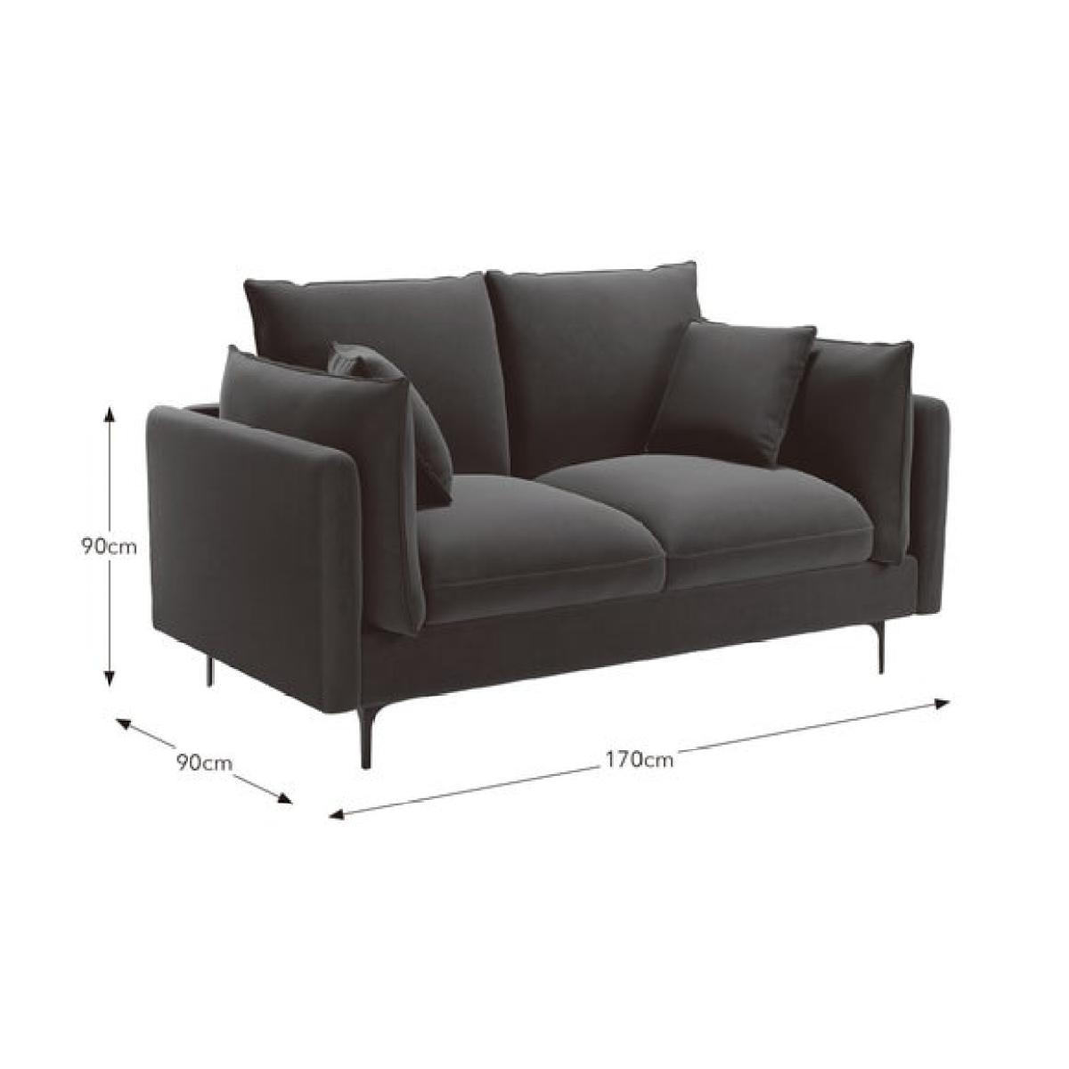 * Sleek, modern sofa * Knife edge cushions * Foam and Fibre filled seat * Metal legs This velvet sofa brings a touch of luxury to your home with its soft, sumptuous upholstery and sleek modern design. The knife-edge cushions offer a crisp, tailored look, while the upholstered plinth base adds a contemporary edge. Compact yet comfortable, this sofa is ideal for smaller spaces or as part of a coordinated suite, offering both elegance and everyday usability.