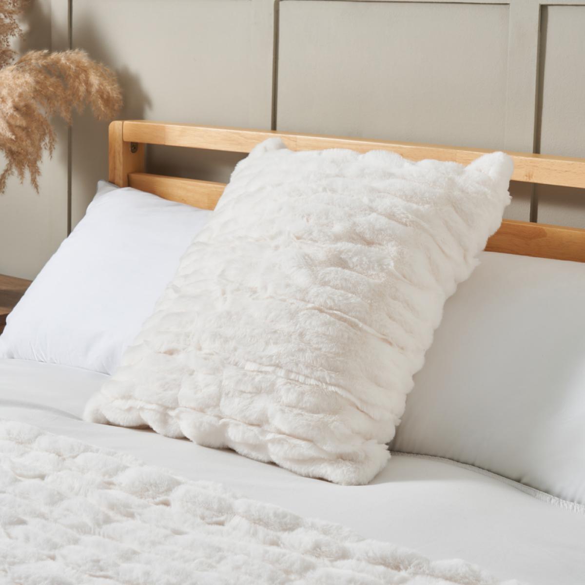 Add a touch of elegance with the Ruched Faux Fur Cushion in Cream, combining plush comfort with timeless design. Its soft faux fur and ruched detailing create a luxurious texture, while the creamy tone brightens and softens any space. Whether styled alone or layered with other cushions, this piece is a versatile addition to your home.
