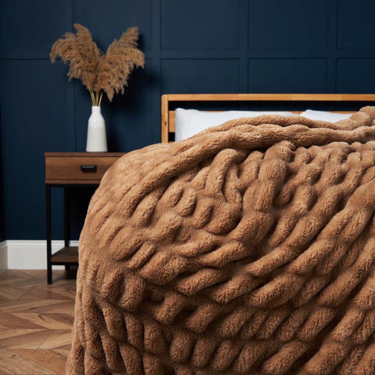 Immerse yourself in the sumptuous comfort of our Ruched Faux Fur Throw, available in various colours. The ruched faux fur texture adds a tactile and elegant touch, while the neutral colours, available in black, white, and natural, offer an earthy aesthetic to your interior decor. Measuring 130x160cm, this throw is perfect for adding both warmth and style to your living space, looking ideal when draped over any bed or sofa.