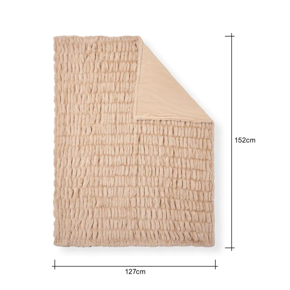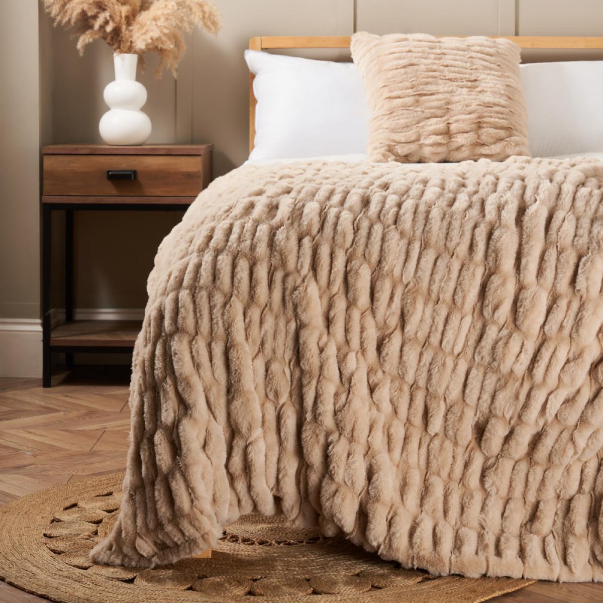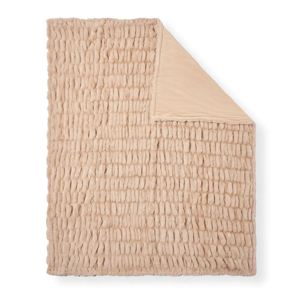 Ruched Faux Fur Throw, Tan