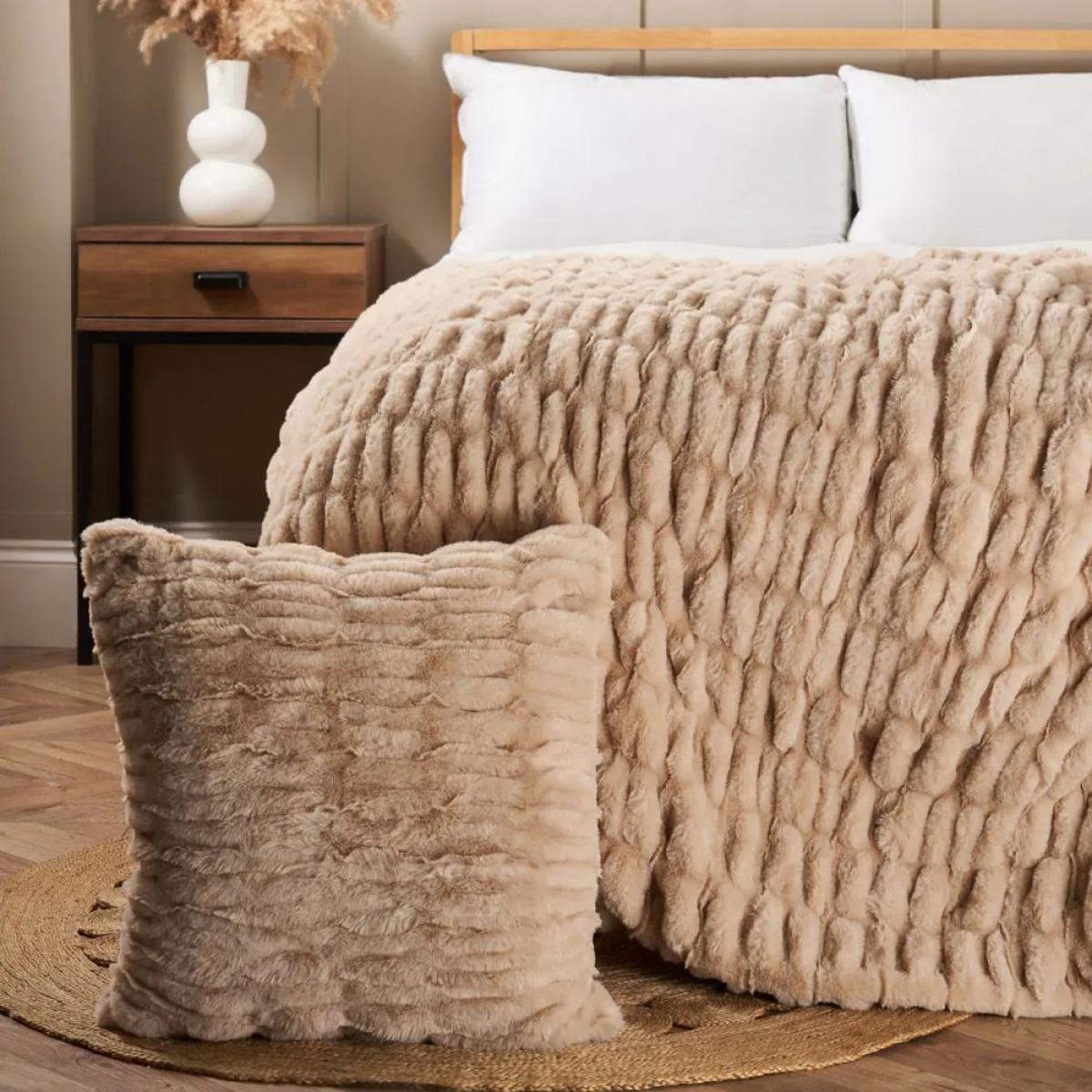 I really like this faux fur throw for adding a plush, cosy touch to a variety of interiors. Its tan colour makes it versatile and easy to incorporate into neutral, warm-toned schemes or layered over contrasting colours for added depth. It's ideal for creating a relaxed, inviting atmosphere in loungers, armchairs, or beds. Practical styling tips include draping it casually over the arm of a sofa or folding it neatly at the foot of the bed for an effortless yet sophisticated finish. The texture adds a tactile element that enhances comfort without overwhelming the space, making it a great all-rounder for both modern and classic settings.