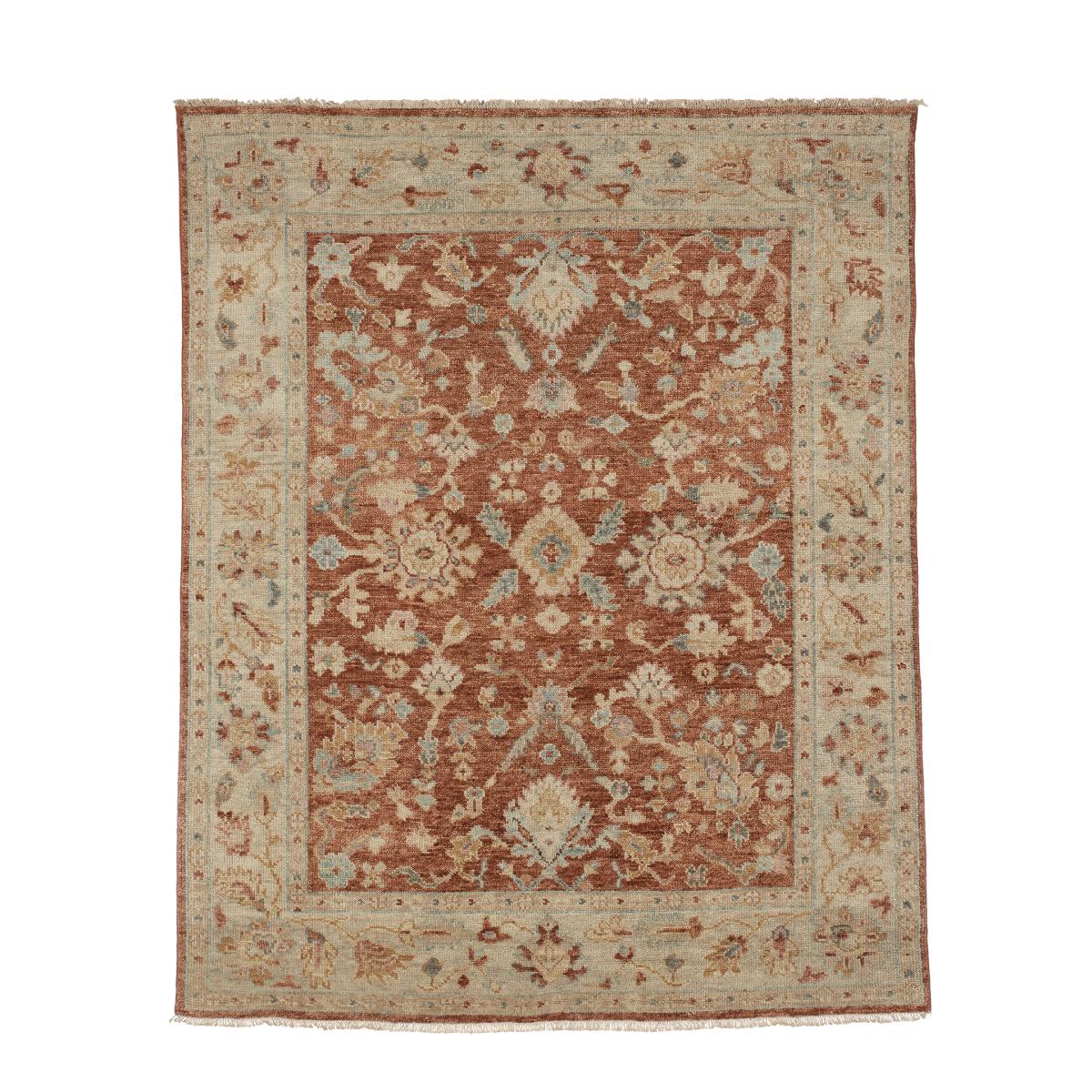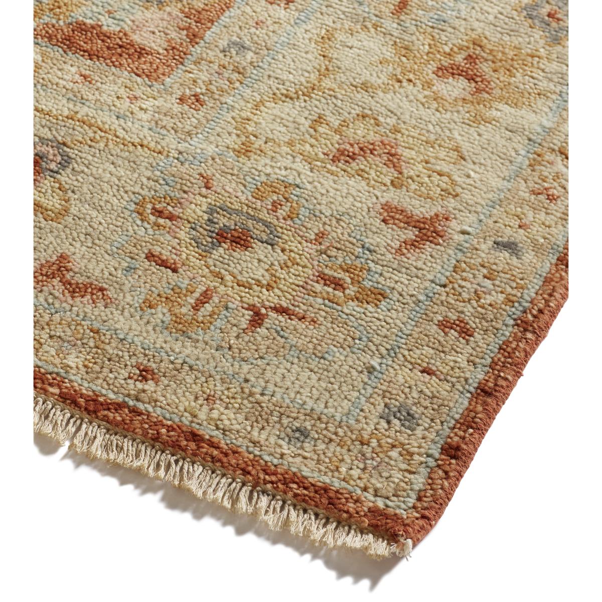 Our Rudaki Rug is hand knotted by skilled craftsmen using artisanal processes from start to finish. After the dyed warm-toned yarn is handwoven into a traditional Persian design, the rug is then washed to achieve a muted, antiqued finish. Due to the manual processes used to create this design, each piece will be unique.