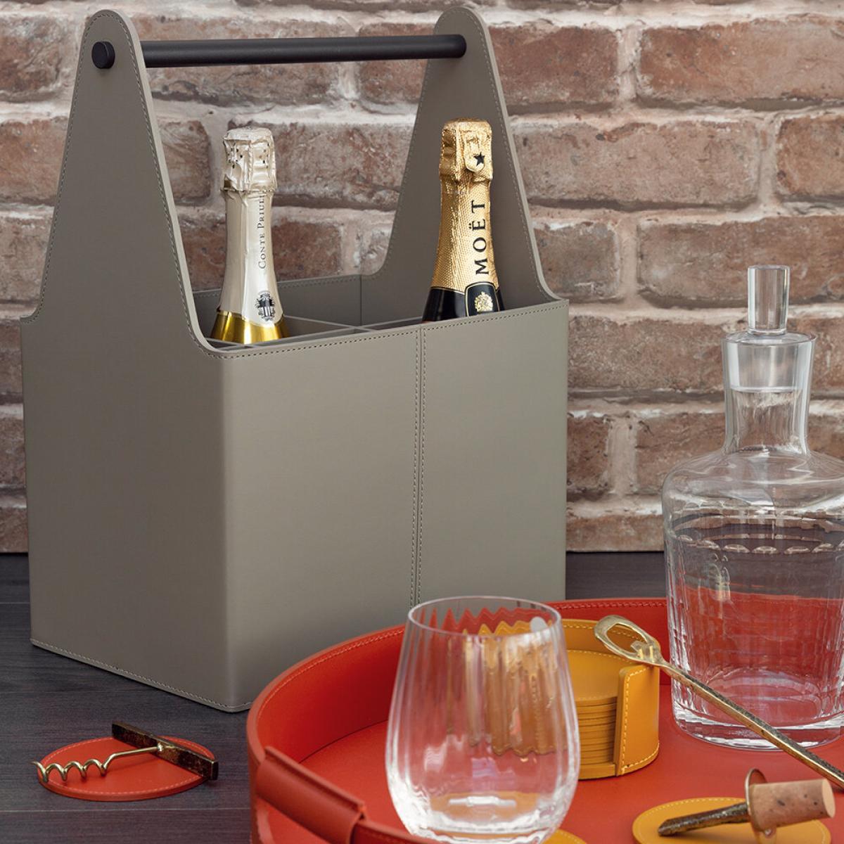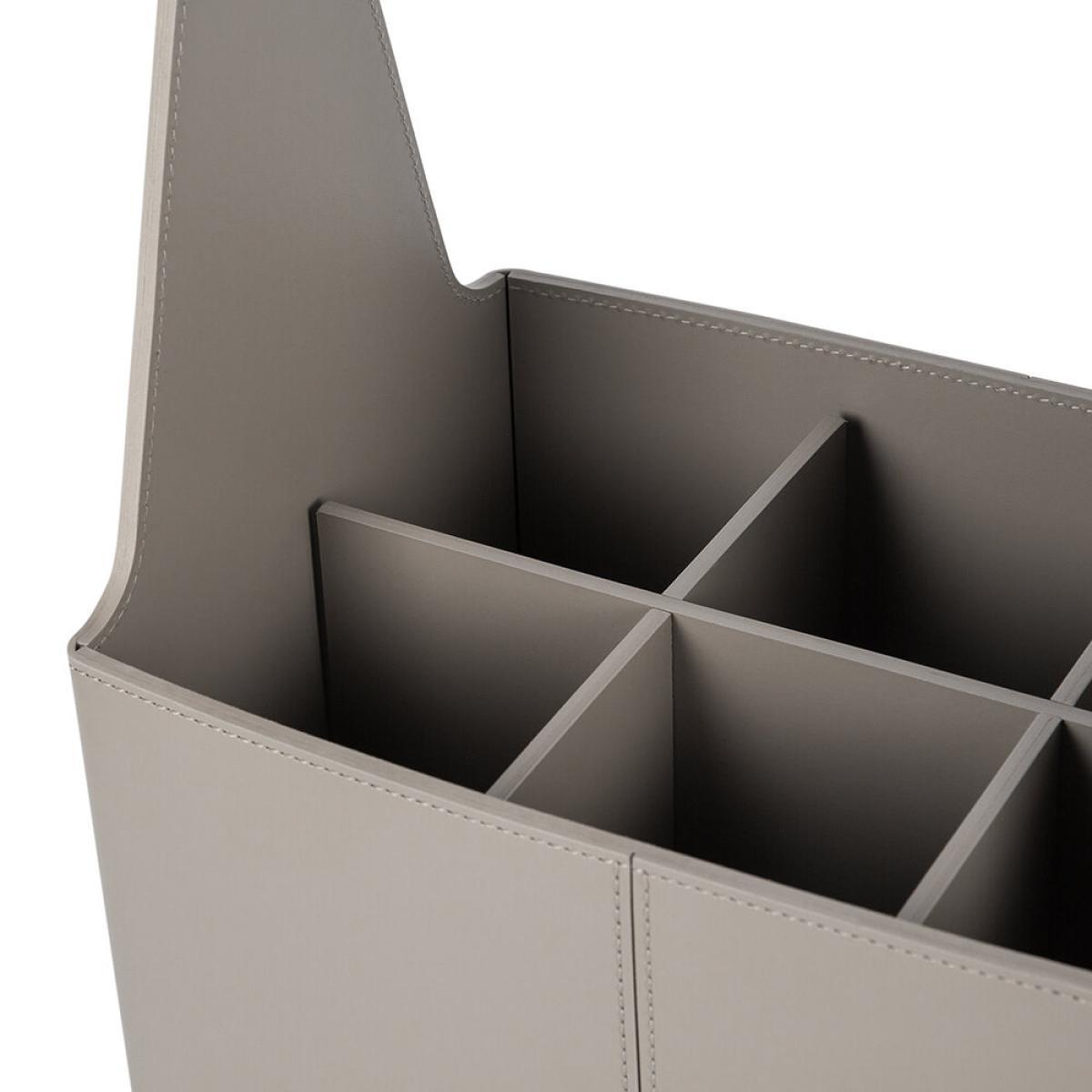 Store your favourite wines in style with this circuit basket from Rudi. Made from Rudi's signature Tecnocuoio® regenerated leather, it features three dividers creating six handy compartments. Key features: * Material: Tecnocuoio® regenerated leather * Dimensions: 31x20cm * Taupe colour * With three dividers * Creating 6 compartments * Water repellent and UV resistant * Made in Italy