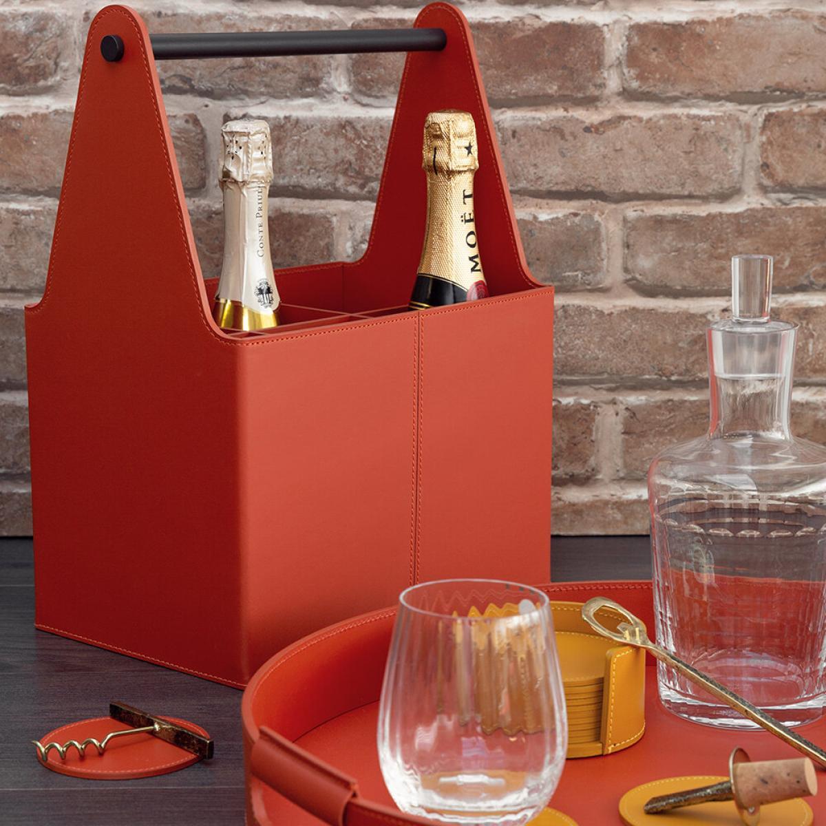 Store your favourite wines in style with this circuit basket from Rudi. Made from Rudi’s signature Tecnocuoio® regenerated leather, it features three dividers creating six handy compartments.